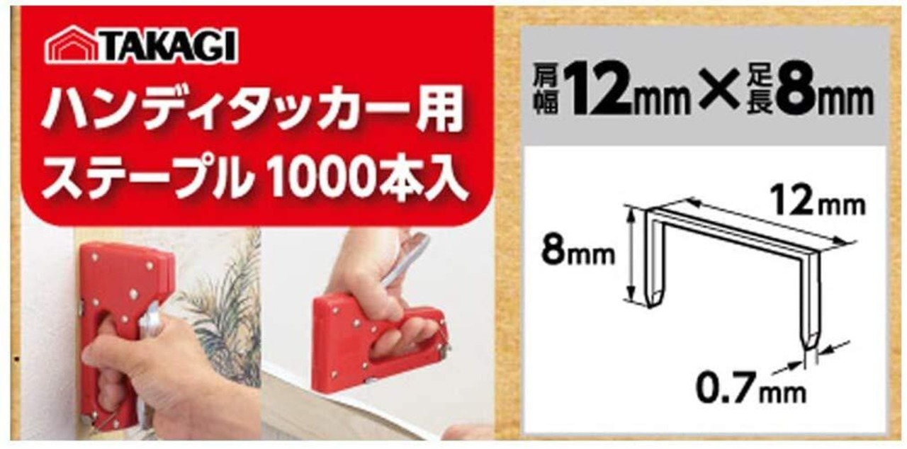 高儀(Takagi) ハンディタッカー用 ステープル 1000本入 12mm×8mm