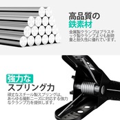 【強力なクランプ力】: 頑丈な鉄製スプリング製で、挟む力が非常に強いです。最大開口部5cmまで開くことができます。