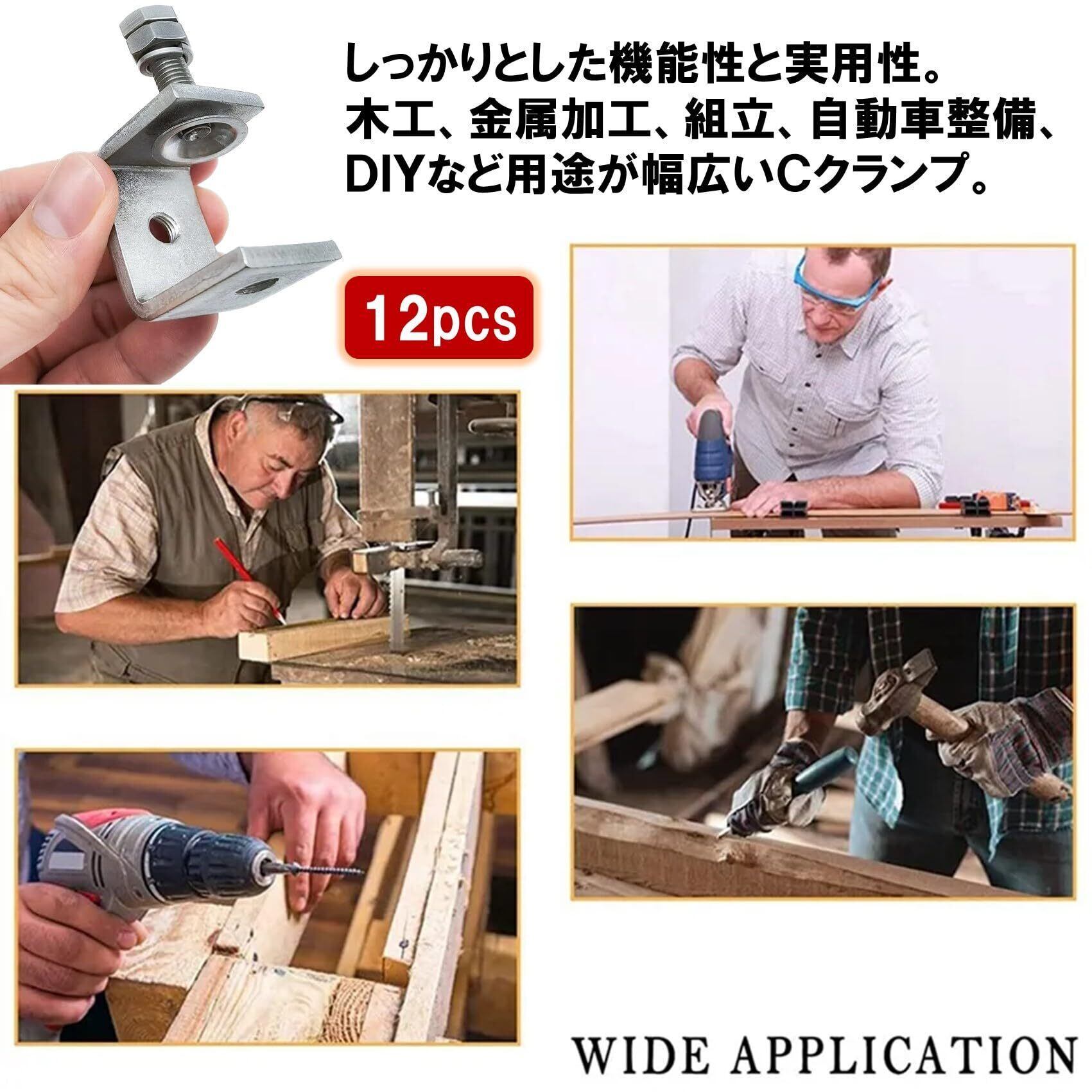 【特価セール】NOELAMOUR Cクランプ ステンレス 30mm ワイド 木工 接着 固定 溶接 ズレ防止 DIY (12個セット)
