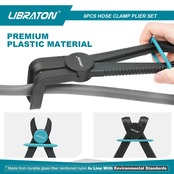 【製品仕様】Libratonホースクランプセットは、ストレートクランプ:150mm、185mm、254mm、90°カーブクランプ:155mm、166mm、220mmの各種サイズがあります。ラジエーター、ブレーキ、燃料システムなどの整備に最適です。