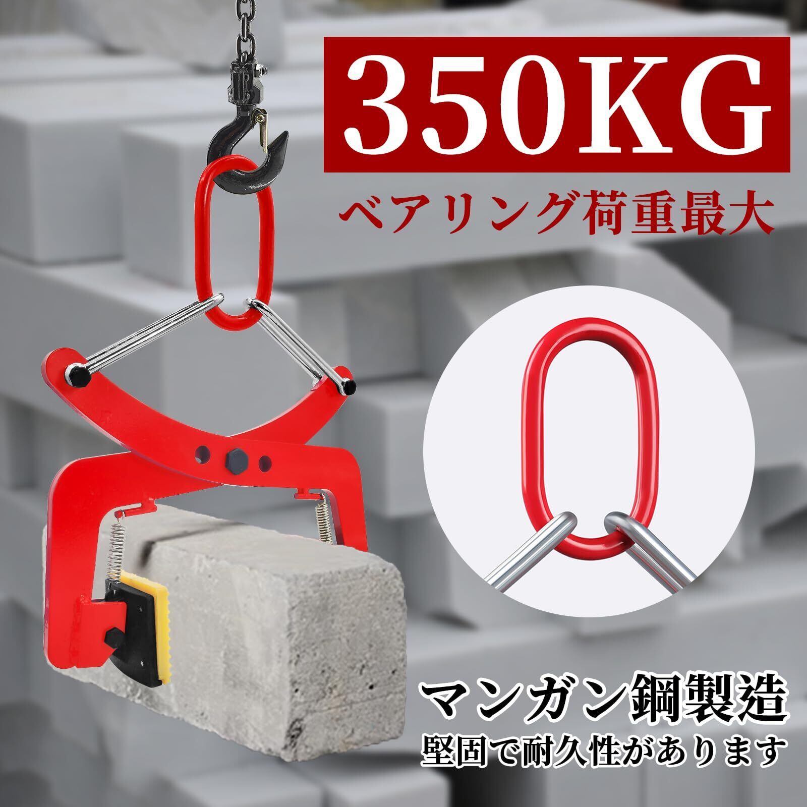 【特別価格】石材クランプ 350KG 開口幅100mm-300mm 吊りクランプ 吊り具 リフティングクランプ 合金鋼石吊り具 墓石クランプ 縁石クランプ 石材用 造園石 建築用石 土木用石 石材 0.3t 吊具【開口幅100-300mm 耐荷重350kg】