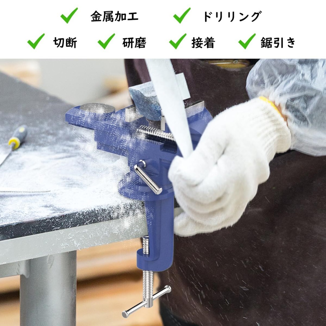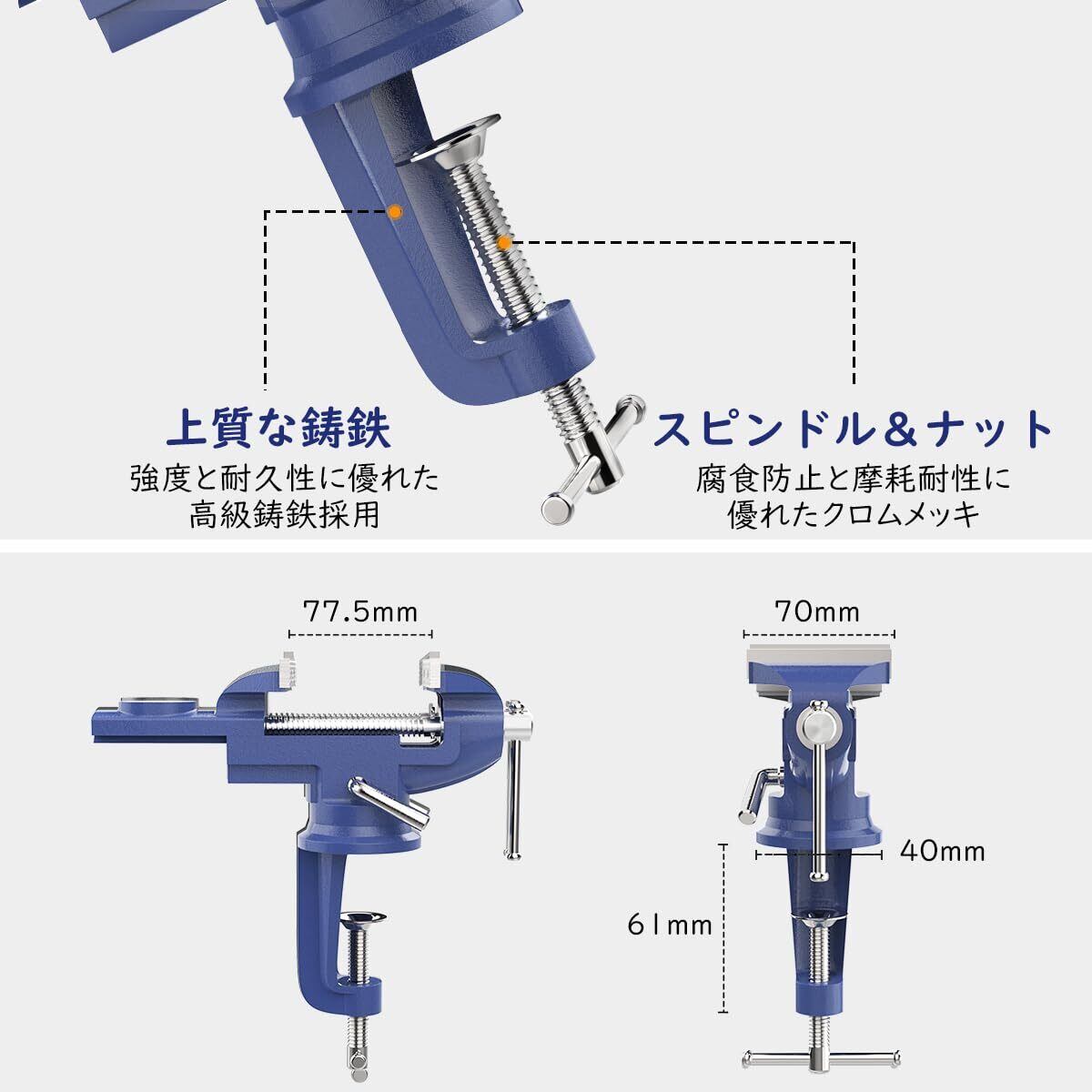 バイス 万力 Housolution 卓上バイス クランプ万力 70mm 使いやすい 360°回転式 角度任意調整可能 切削 研磨 切断 加工 固定 締め工具 青色