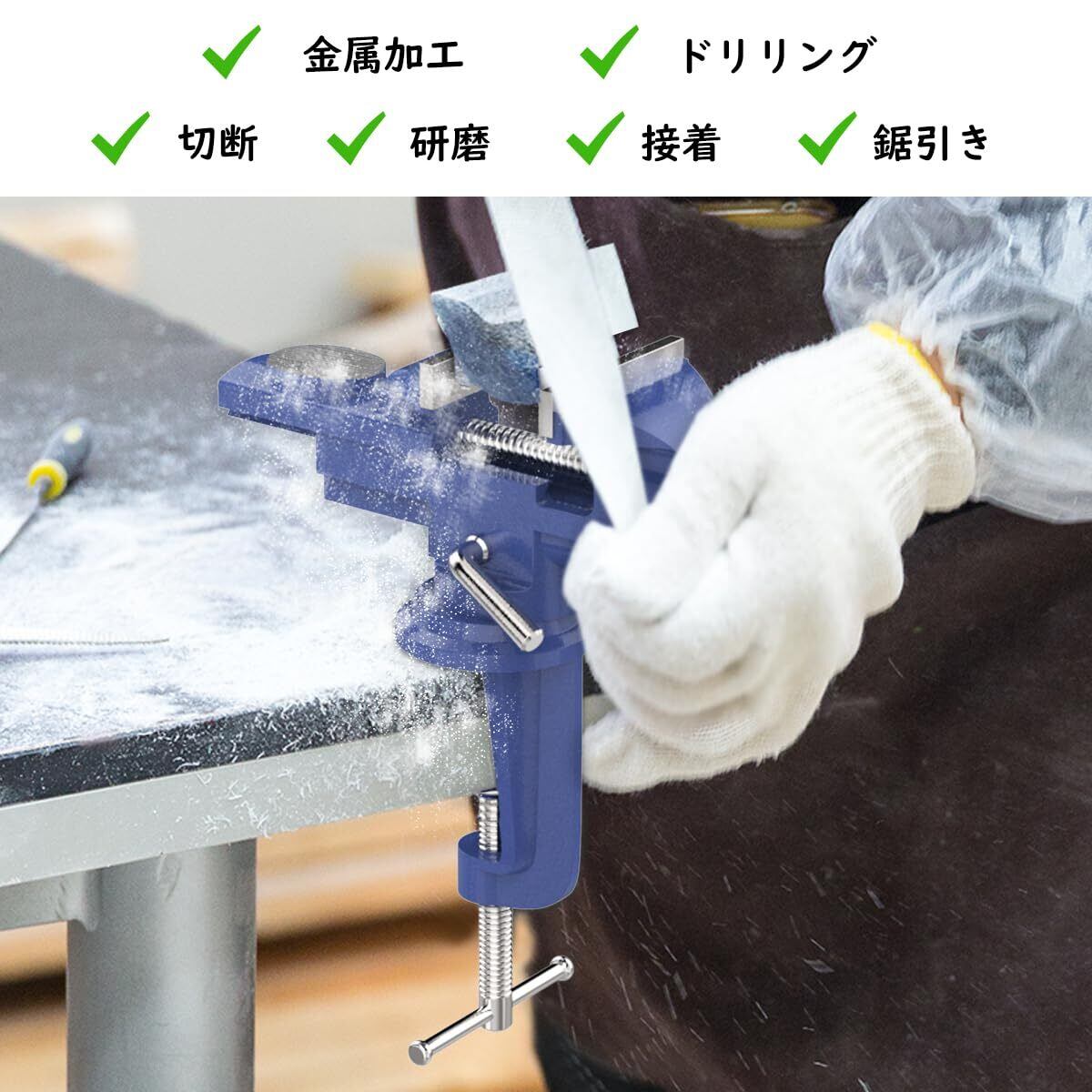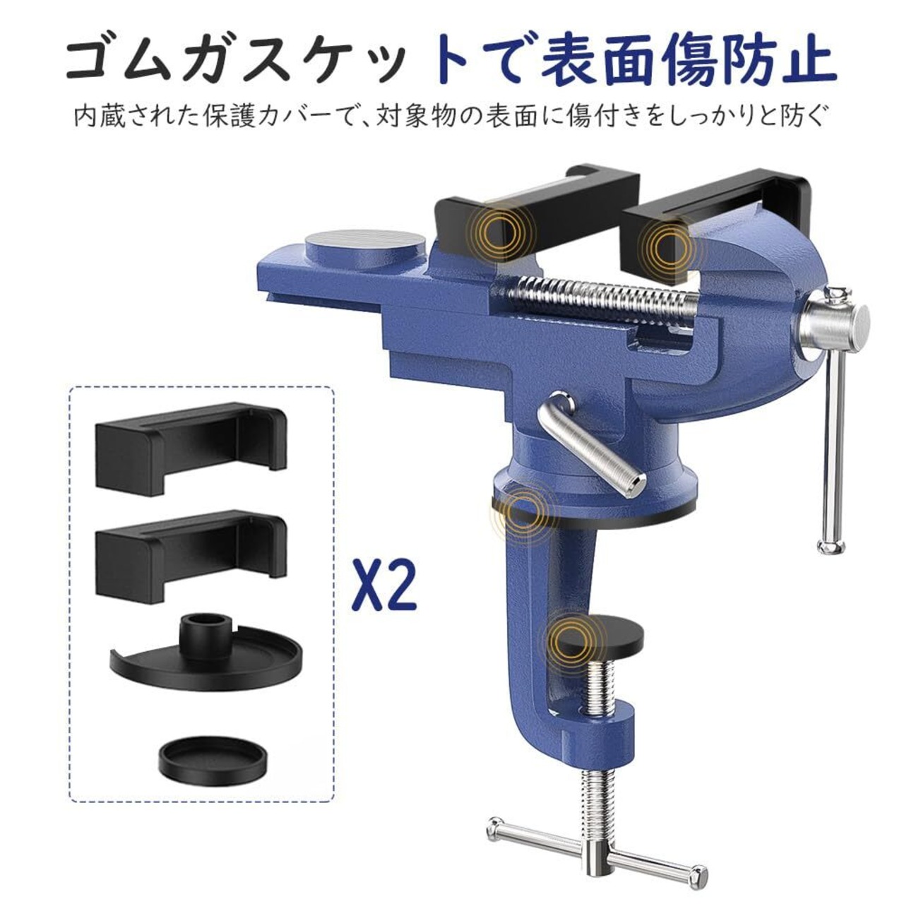 【特別価格】バイス 万力 Housolution 卓上バイス クランプ万力 70mm 使いやすい 360°回転式 角度任意調整可能 切削 研磨 切断 加工 固定 締め工具 青色