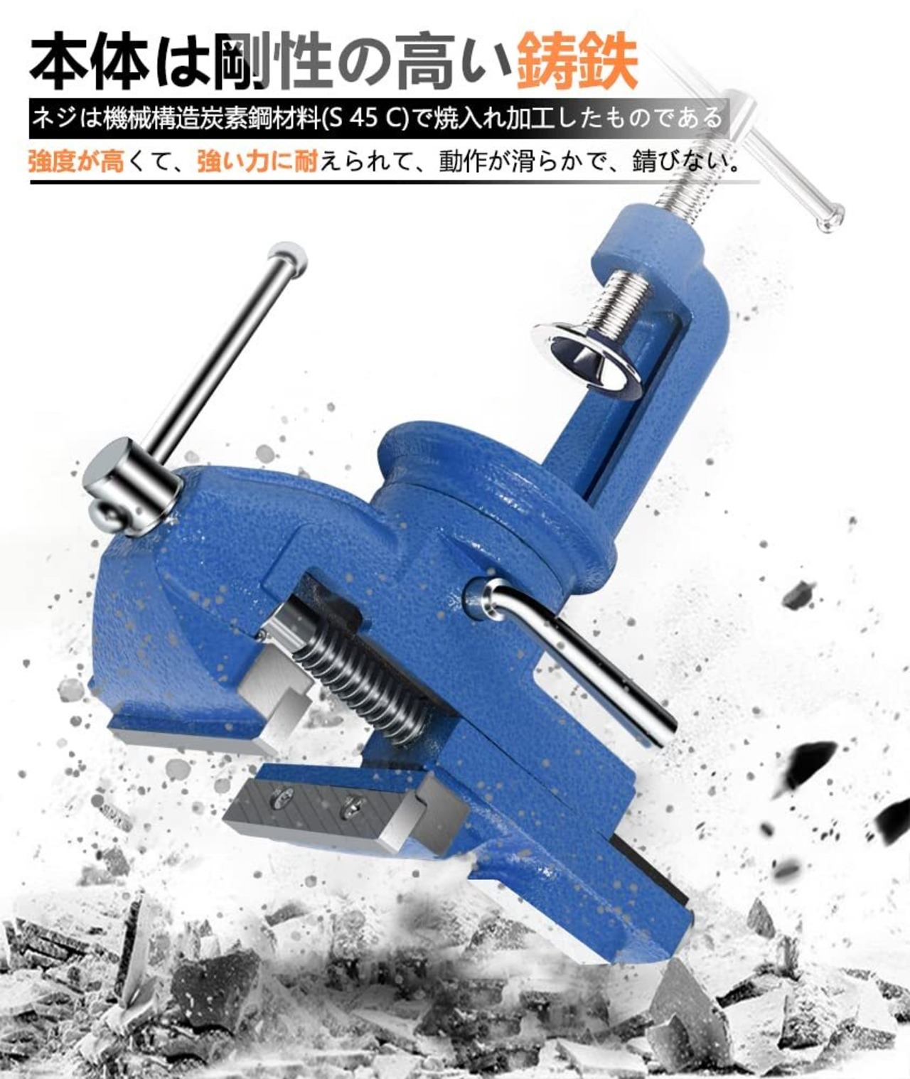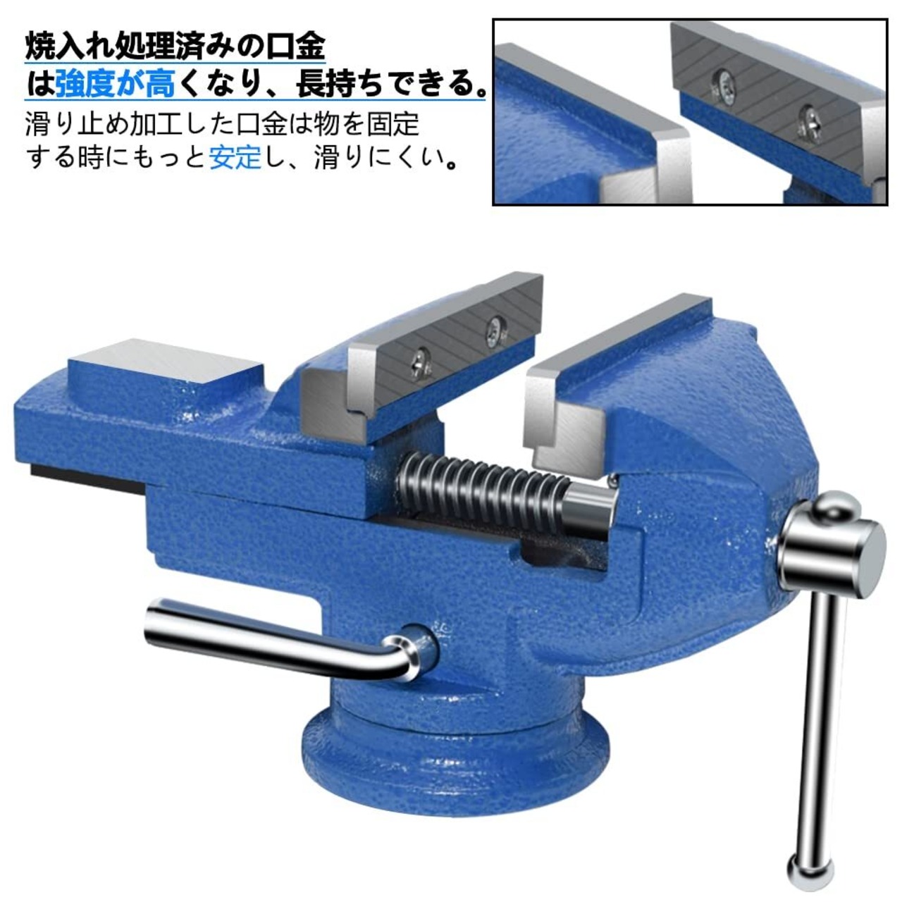 特徴:360度回転式ベンチバイス、回転台付きで、加工に便利、作業性がアップできます。取り付けや外しも自由で、細かい作業に最適です!