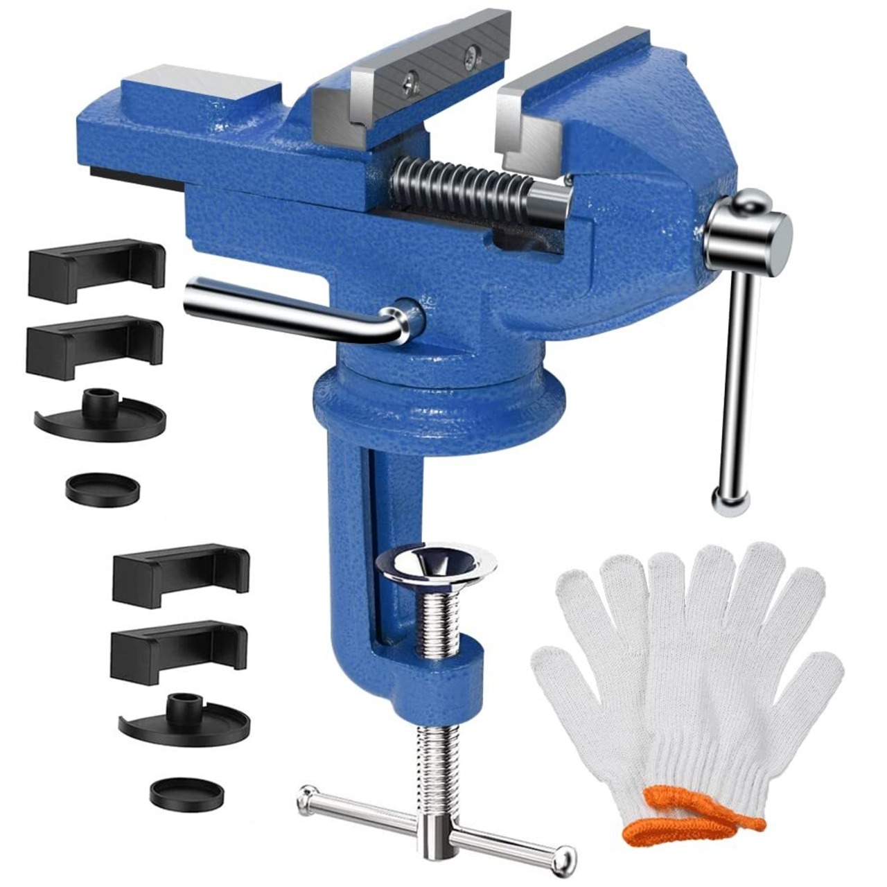 360度回転式ベンチバイス 8pcsゴムパッド 付き -----贈り物: 手袋*2 (ランダムな色)