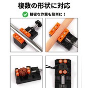 (しっかり固定できる)八穴タイプの万力は、加工する物の大きさに合わせて樹脂製グリップが動かせるため、様々な形状の物をしっかりと固定できます。球体や楕円形の物でも安心して使用でき、4点で確実に固定することで、作業効率の向上にも寄与します。