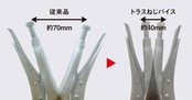 ・くわえ部はすべて独自設計のダイヤ型とし、計3カ所のくわえ部で、3点支持で確実につかむ