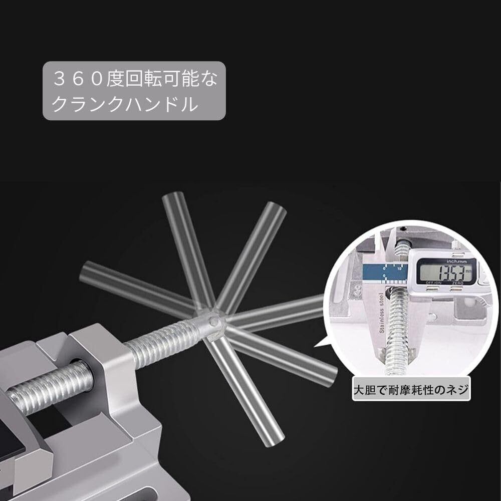 回転式アルミ卓上バイス, 開口70mm, 360度回転ハンドル, プラモデル・精密作業用