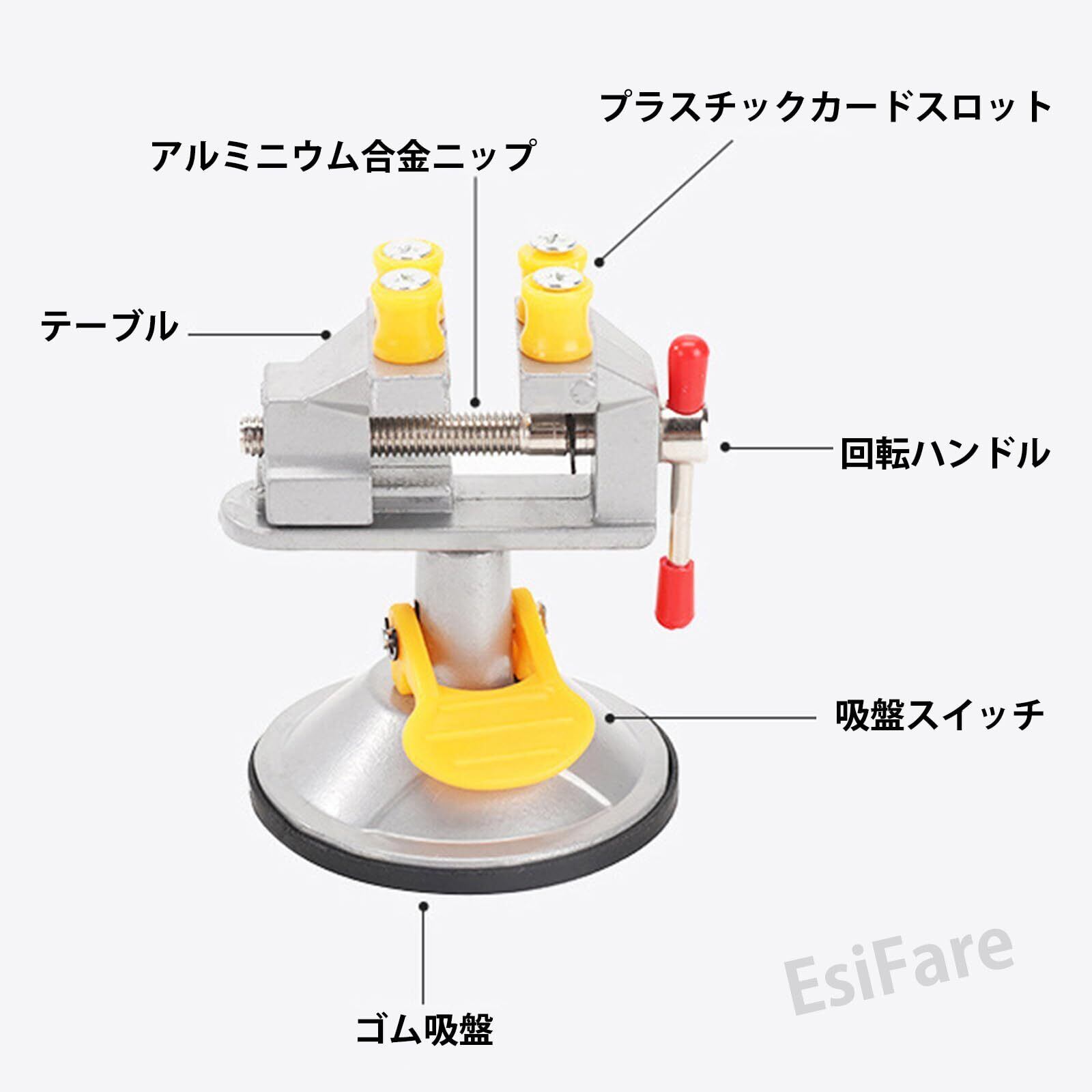 卓上万力 小型万力 吸盤テーブルバイス 調整可能アルミ合金製ミニベンチバイス ドリルプレス万力 360度回転テーブルクランプ 多機能小型ベンチバイス プラスチックカードスロット付き 簡単取付 滑り止め 彫刻 木工 金属加工 ジュエリー制作用固定具