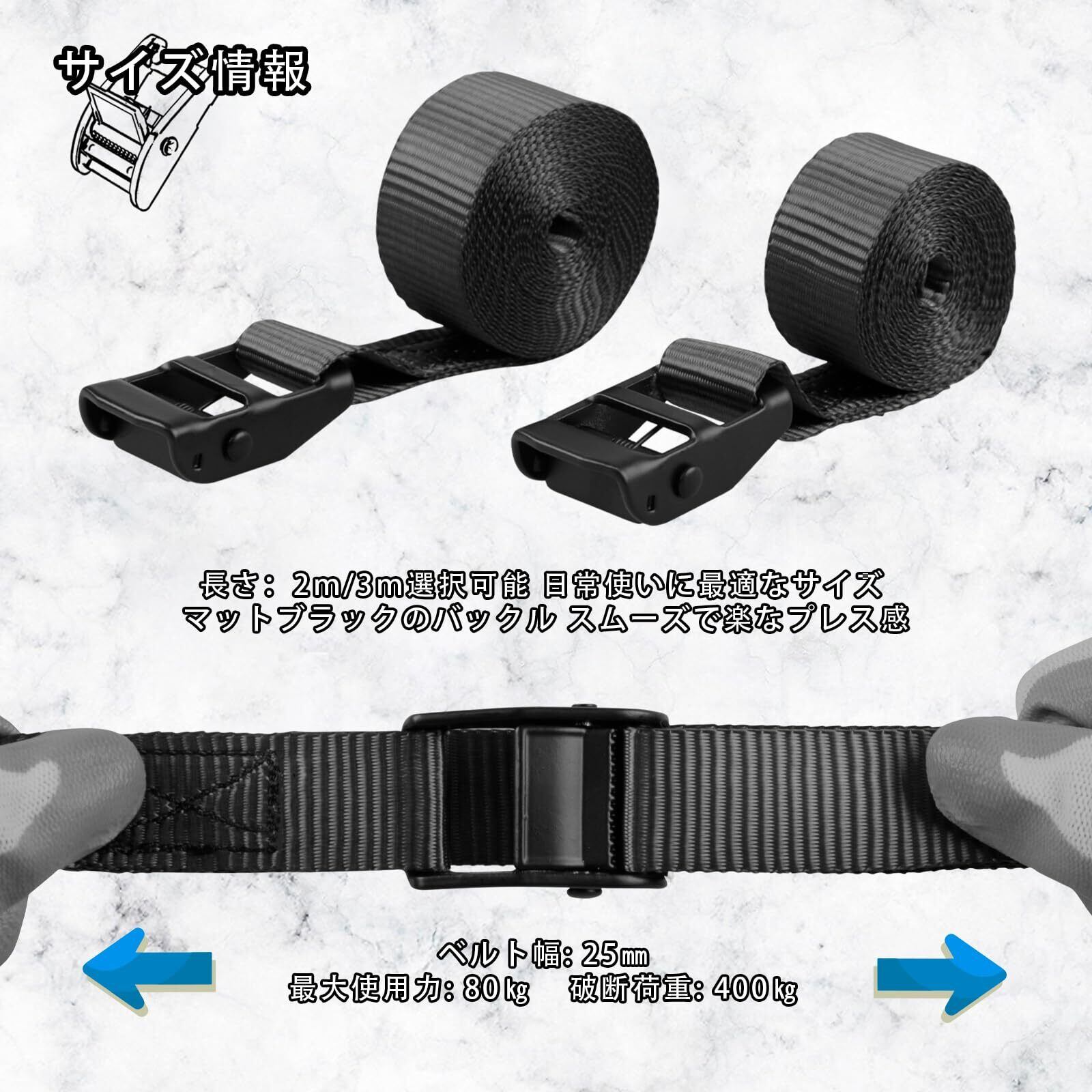 荷締めベルト 破断400KG 2Mx2本 荷物固定 多用途 結束バンド 自動車ベルト バイクベルト 地震対策グッズ タイダウンベルト ラッシングベルト Lashing Strap