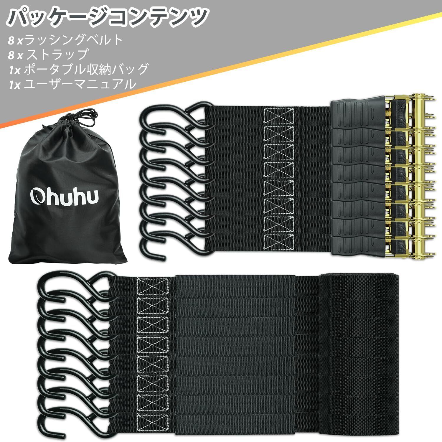 【2025最新】Ohuhu ラチェットベルト タイダウンベルト ラッシングベルト 長4.5m 幅2.5cm 荷締めベルト 破断荷重680kg マックス使用荷重226kg バイク 荷物固定 締付簡単 引越し 運搬用 多用途 ブラック(8本セット)
