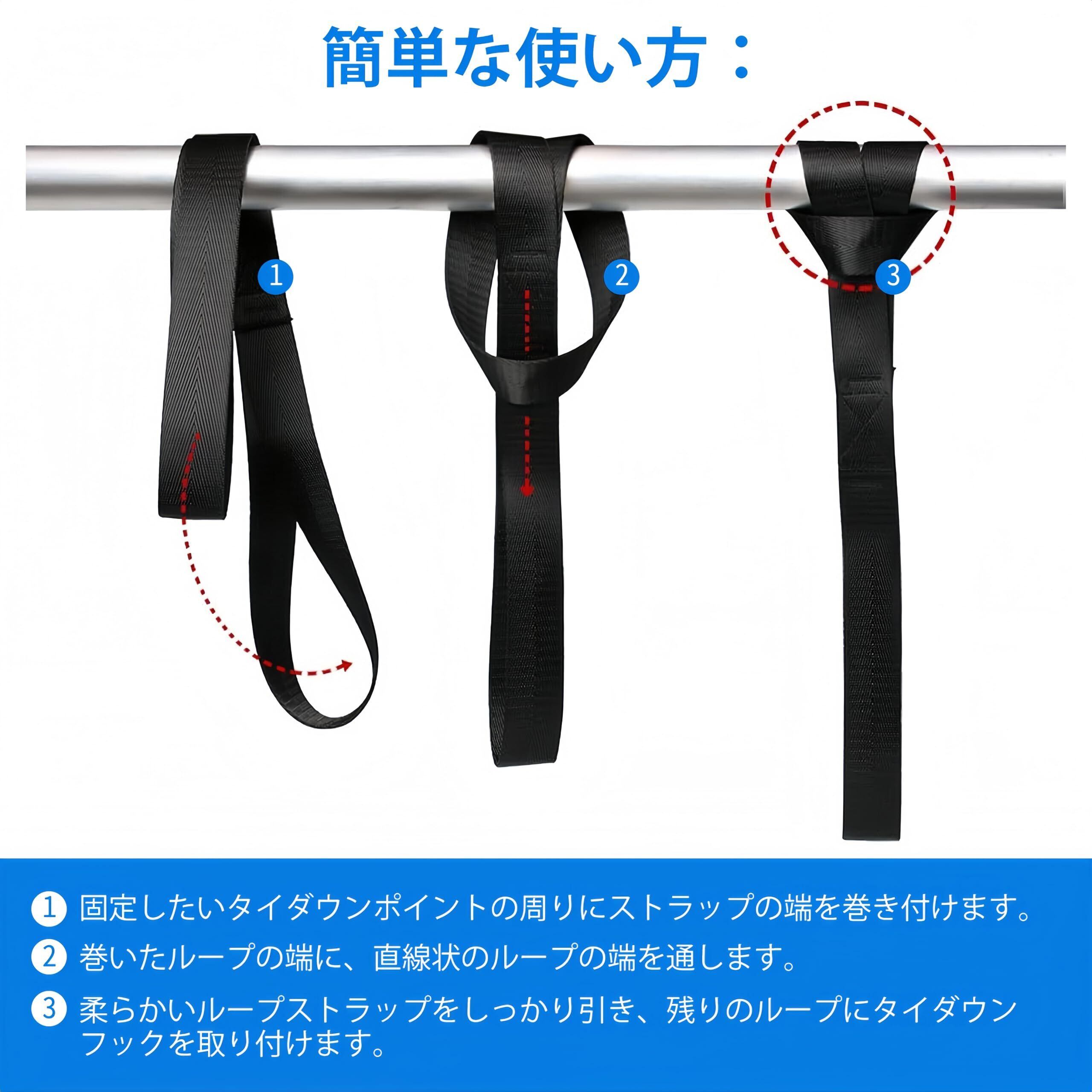 幅広い用途で活躍:このナイロンスリングは貨物輸送やアンカーポイントの固定、フック接続、トレーラー管理など、さまざまな用途に対応します。バンジーコードやラチェットタイダウンとしてだけでなく、キャンプ、荷役作業、オートバイ、ATV、四輪駆動車、自転車など、幅広いシーンで活躍します。