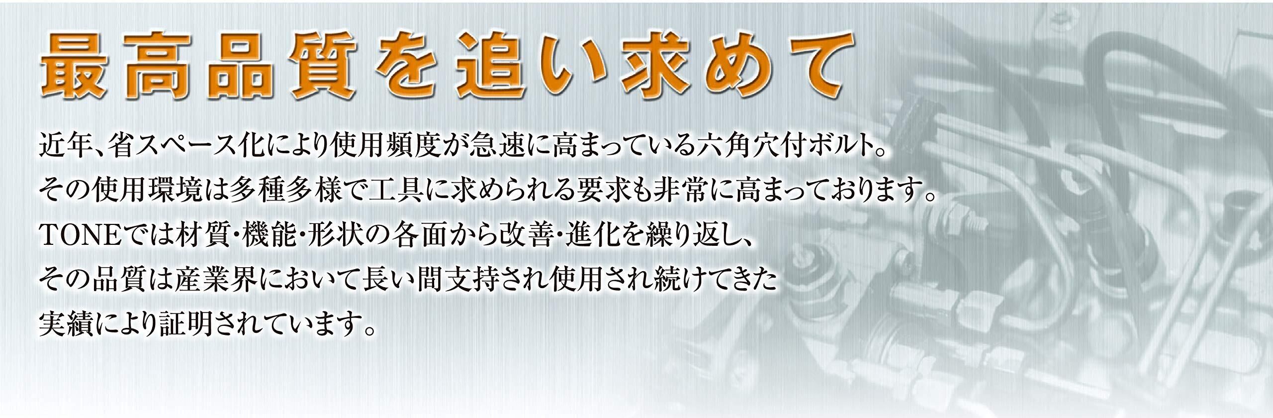 高度な熱処理とメッキ処理により、六角部の摩耗を防ぎます。