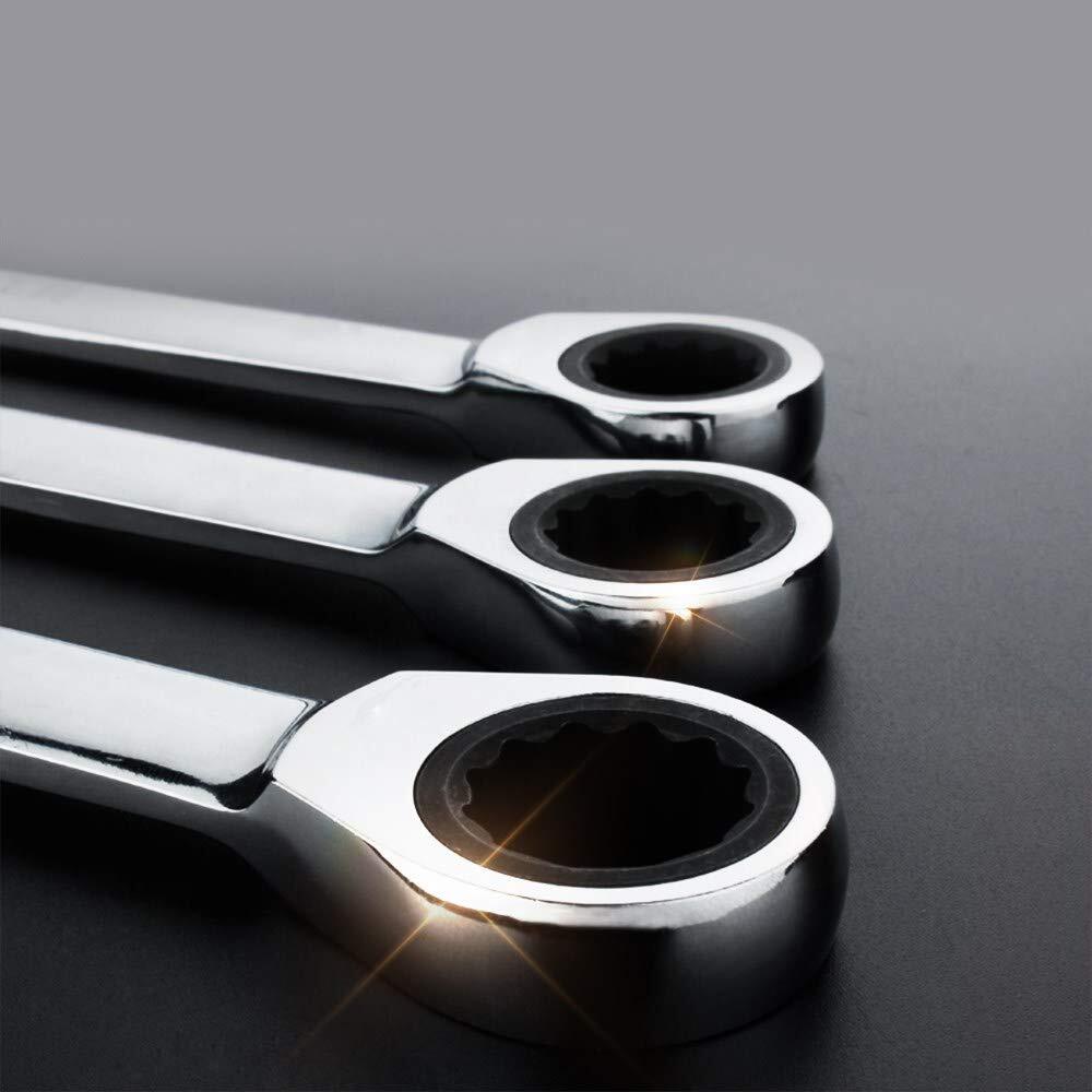 ラチェットレンチ コンビネーションレンチ スパナ整備工具 17mm 作業 常備 車 バイク 各種メンテナンス対応 家具組み立て 鏡面仕上げ (17mm)