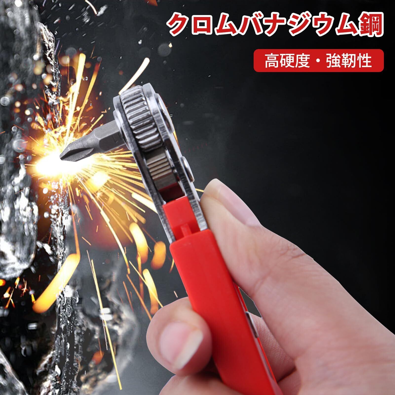 材質: ドライバービットとソケットは、クロムバナジウム鋼、高硬度と防錆で作られています;オフセットラチェットレンチは、プレミアム鋼で作られています。