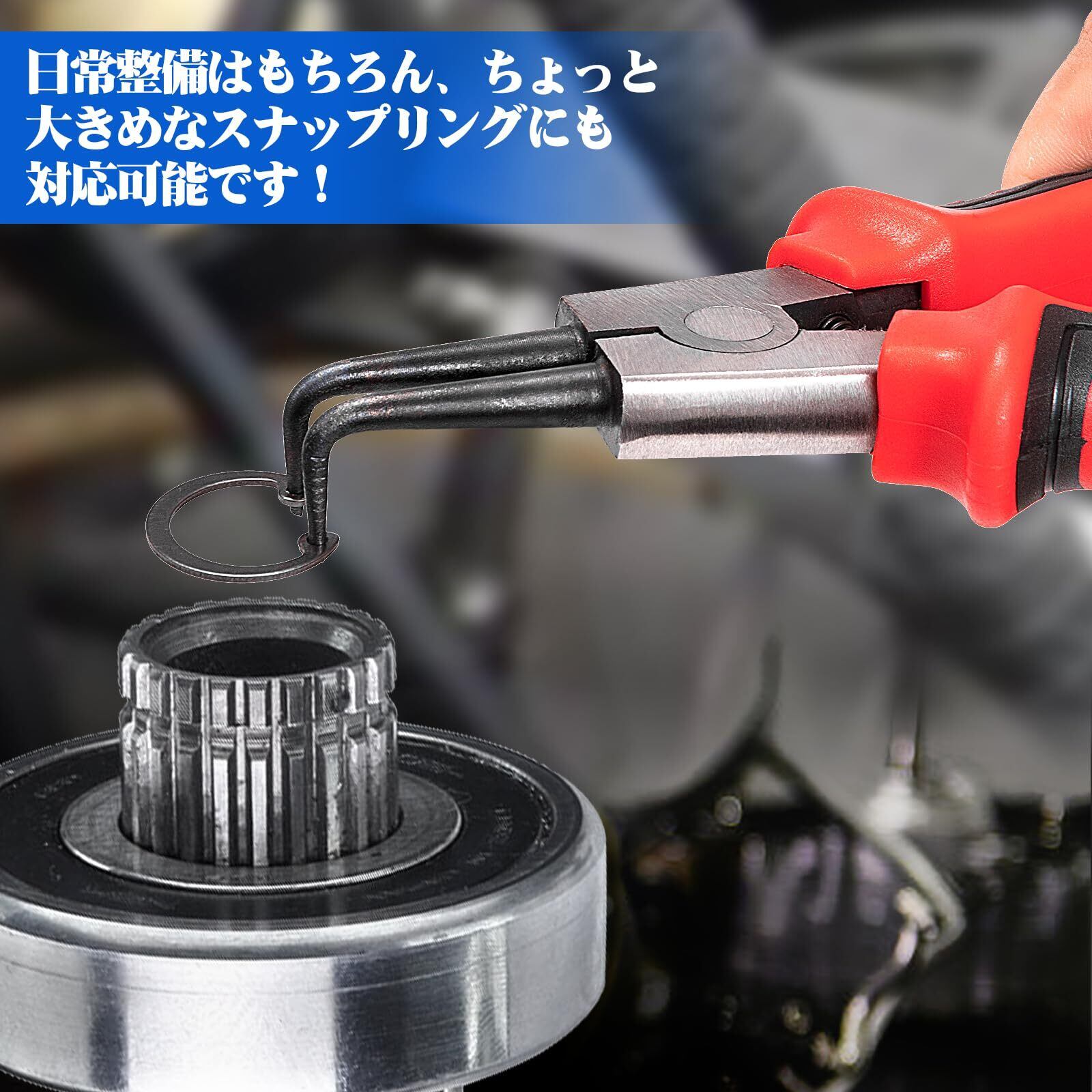【幅広く使える万能タイプ】:スナップリングプライヤーセットは、軸用・穴用のスナップリングの脱着に大活躍!自動車整備や家電修理、機械の組立、工場作業からDIYメンテナンスまで幅広く対応します。