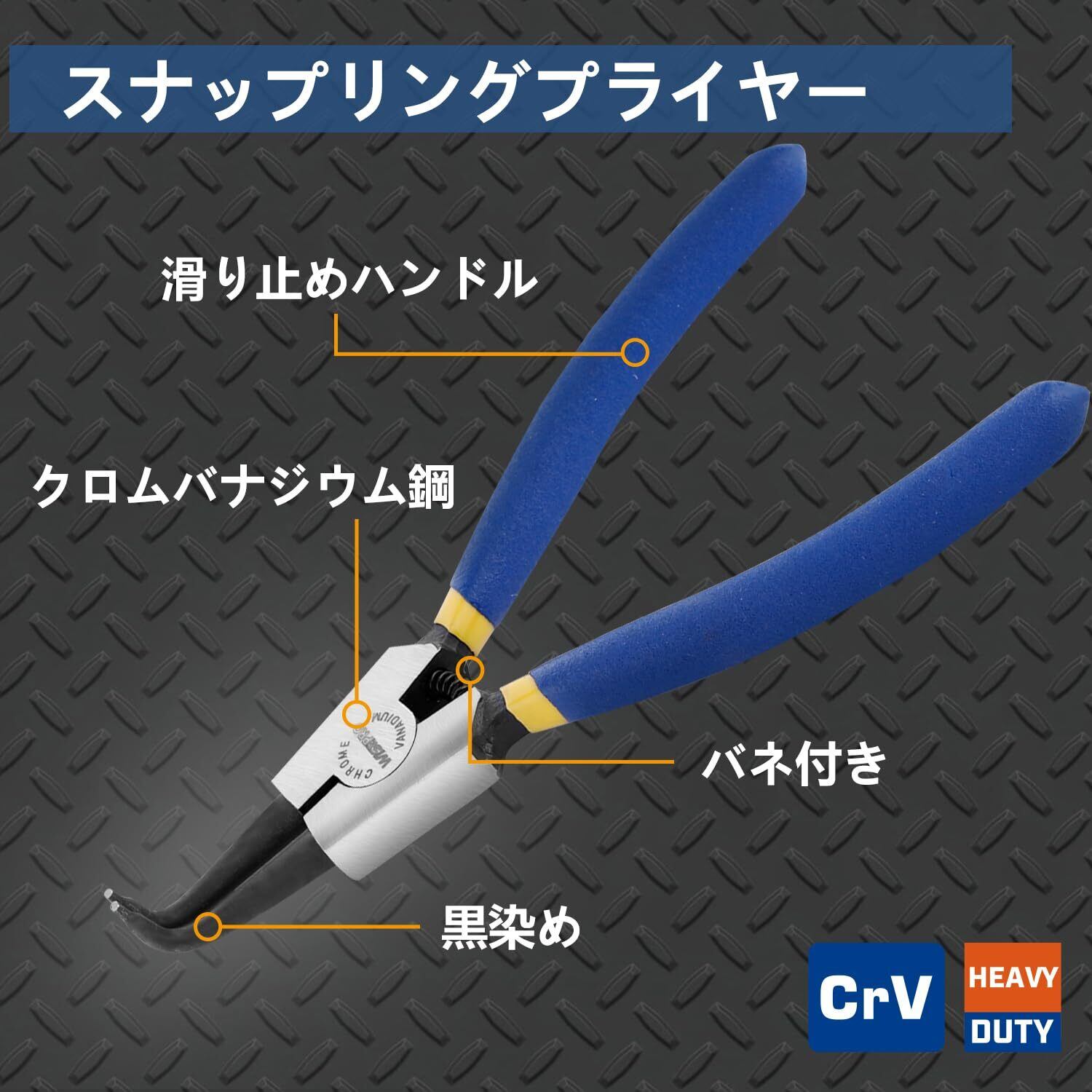デザイン: スナップリングプライヤーには耐久性のあるスバネが付いており、ジョーを開いてから位置は自動的に戻すことで疲労を軽減し、連続作業しても疲れにくいです。グリップは滑り止めで握りやすい