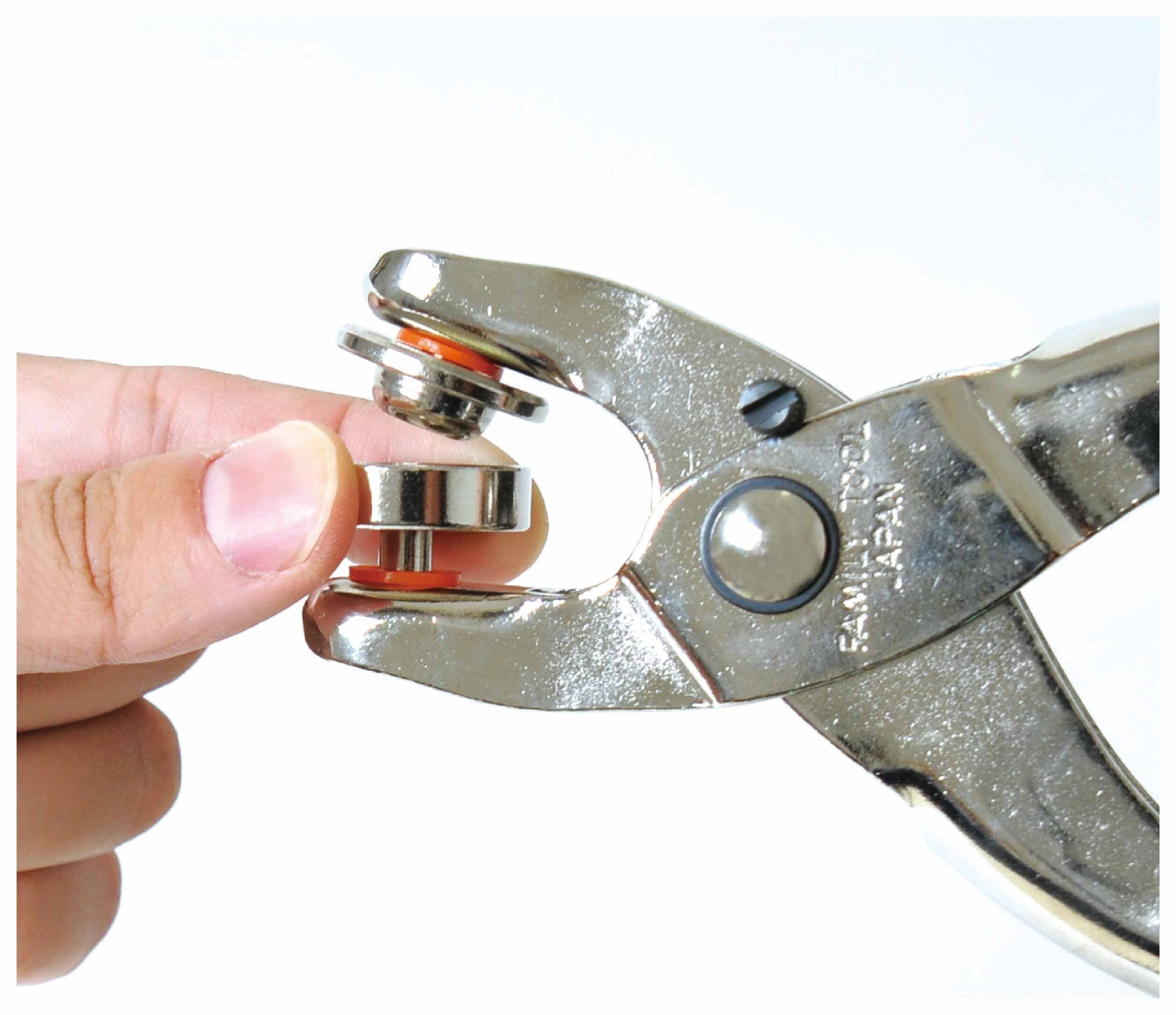 レザー用品などの補強、補修やアクセントにもなります。コマ(別売)を換えることでハトメやスナップ、リングホックにも使用することが出来、用途が広がります。穴に差し込むだけで準備ができるため、特別な技術や道具は必要ありません。