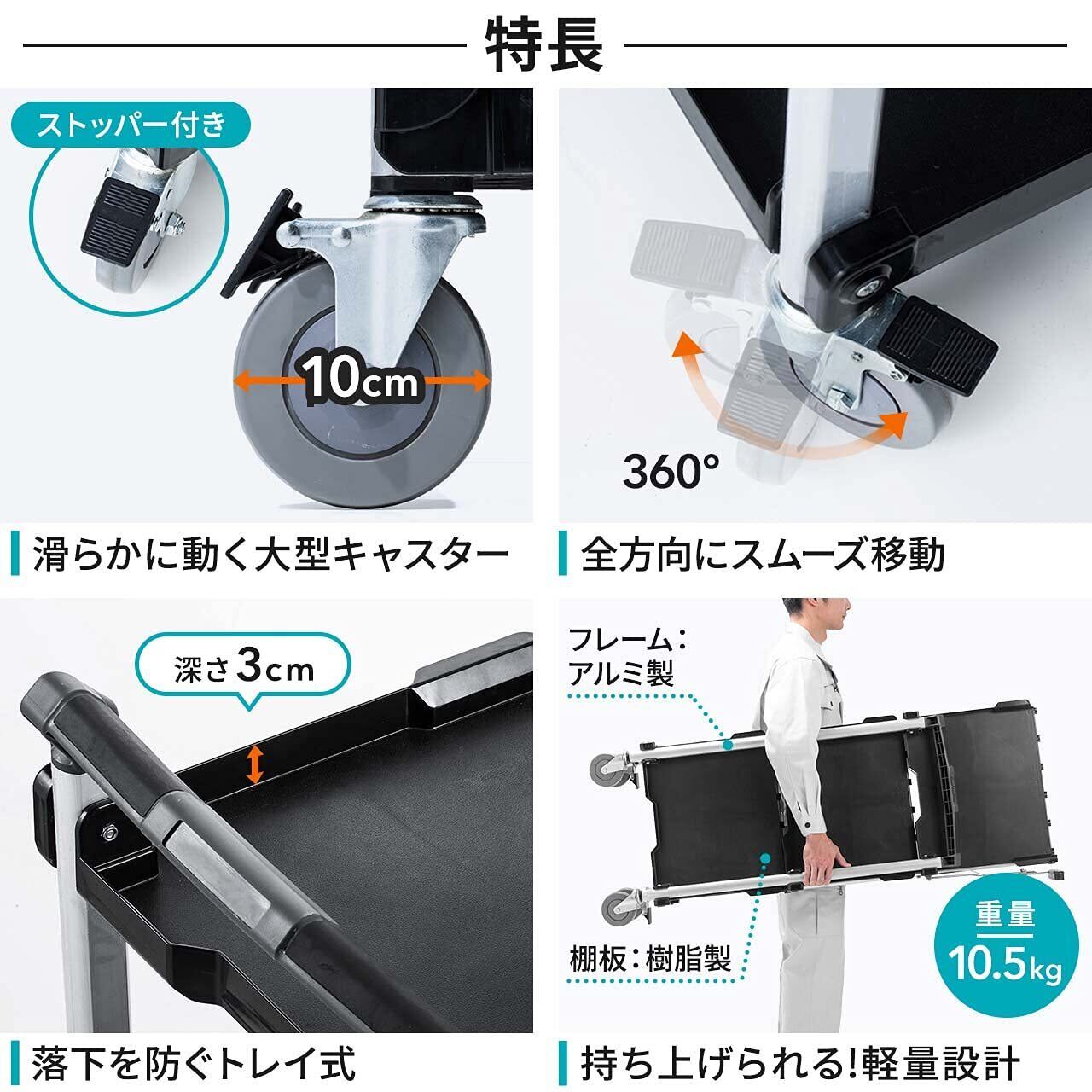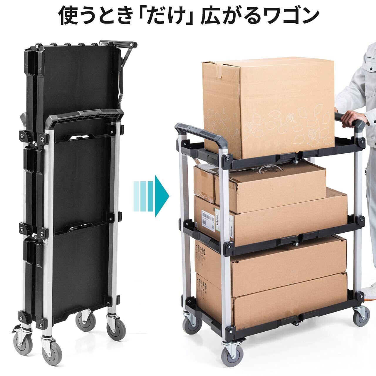サンワダイレクト ツールワゴン キャスター付き 3段 折りたたみ 総耐荷重135kg 1個 軽量 100-CART011