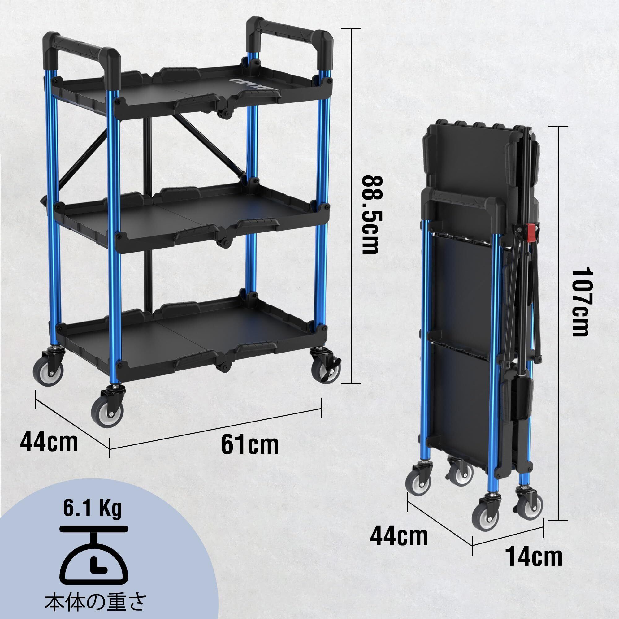 【2025最新】WORKPRO ツールワゴン ツールカート 工具ワゴン 工具カート 折りたたみ 3段式 キャスター付き 合金鋼 総耐荷重95kg 工具収納 整備用 移動 運搬 作業