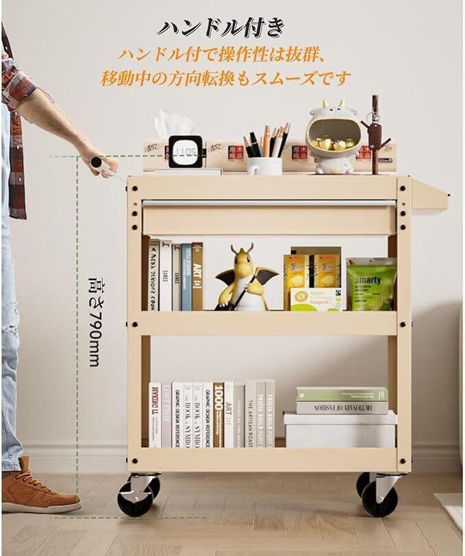 ツールワゴン ツールカート 工具ワゴン 3段 工具カート キャスター付き 工具台車 メッシュパネル ハンドル付 総耐荷重200kg 工具収納 移動 運搬 作業 62X35X74CM (引き出し付き, グリーン)
