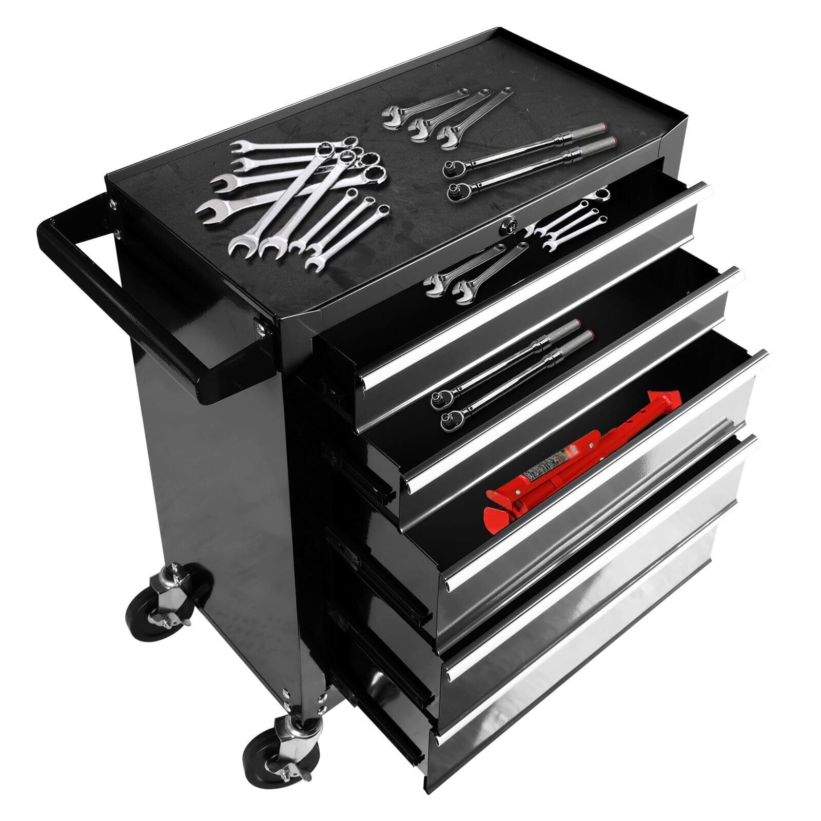 【特別価格】ツールキャビネット 強化5段ローラーキャビネット ツールボックス 5段タイプ 多目的工具箱 多段収納 スチール製 鍵付き 工具箱 大容量 ブラック