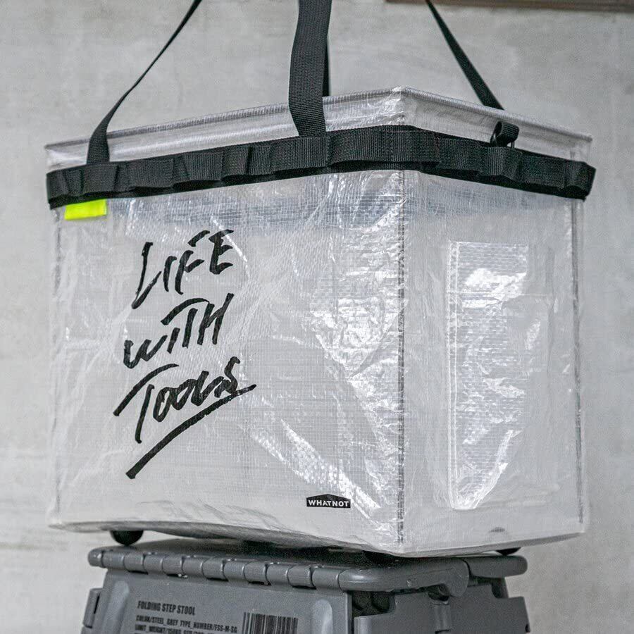商品説明WHATNOTのオリジナルプロダクト「One Touch Bucket」に新たなカラー「クリア」が登場! 工具・道具の収納や運搬、買い物のエコバック代わりなど、DIYからアウトドアまで幅広くご利用いただけます。使わない時は折りたたみ収納ができるので、場所を取りません。