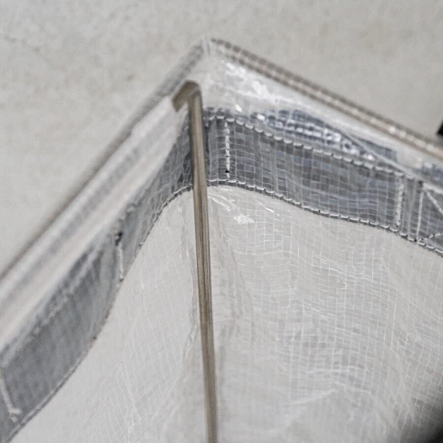 素材:【本体】PP【ワイヤー】ステンレス(3mm径)【底面】PP板+EPE【取っ手】PE【ループ】PE【Dカン】亜鉛合金【脚】PP【タグ】PVC