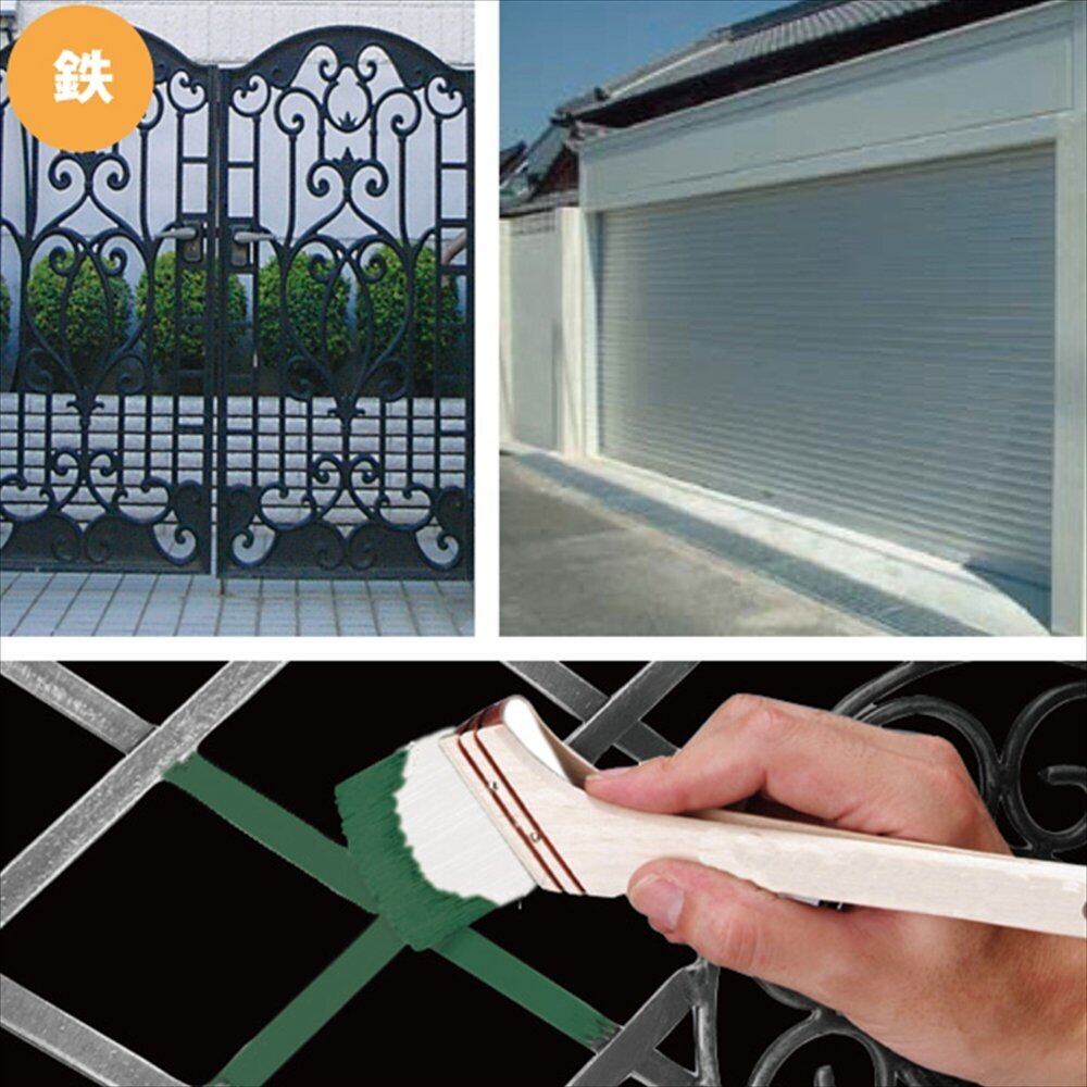 【用途】■[屋内外の木部・木製品]窓わく / 格子 / 羽目板 / 雨戸 / 板べい / ガーデニング用品 / ドア / 戸袋 / ラティス / デッキ など ■[屋内外の鉄部・鉄製品]門扉 / シャッター / フェンス / トタン / ドア / 農機具 など ■[室内かべ・及び 天井]浴室 / 台所 / 洗面所 / トイレ など ■[屋外かべ]外かべ:サンディング / ブロック塀 など 材質:外カベ/コンクリート・モルタル面・サイディング など ■[プラスチック]発泡スチロール / プラスチック 材質:硬質塩ビ / アクリル / ABS ■[屋根]瓦屋根 材質:セメント瓦 / スレート瓦 / 新生瓦 (カラーベスト・コロニアル等)