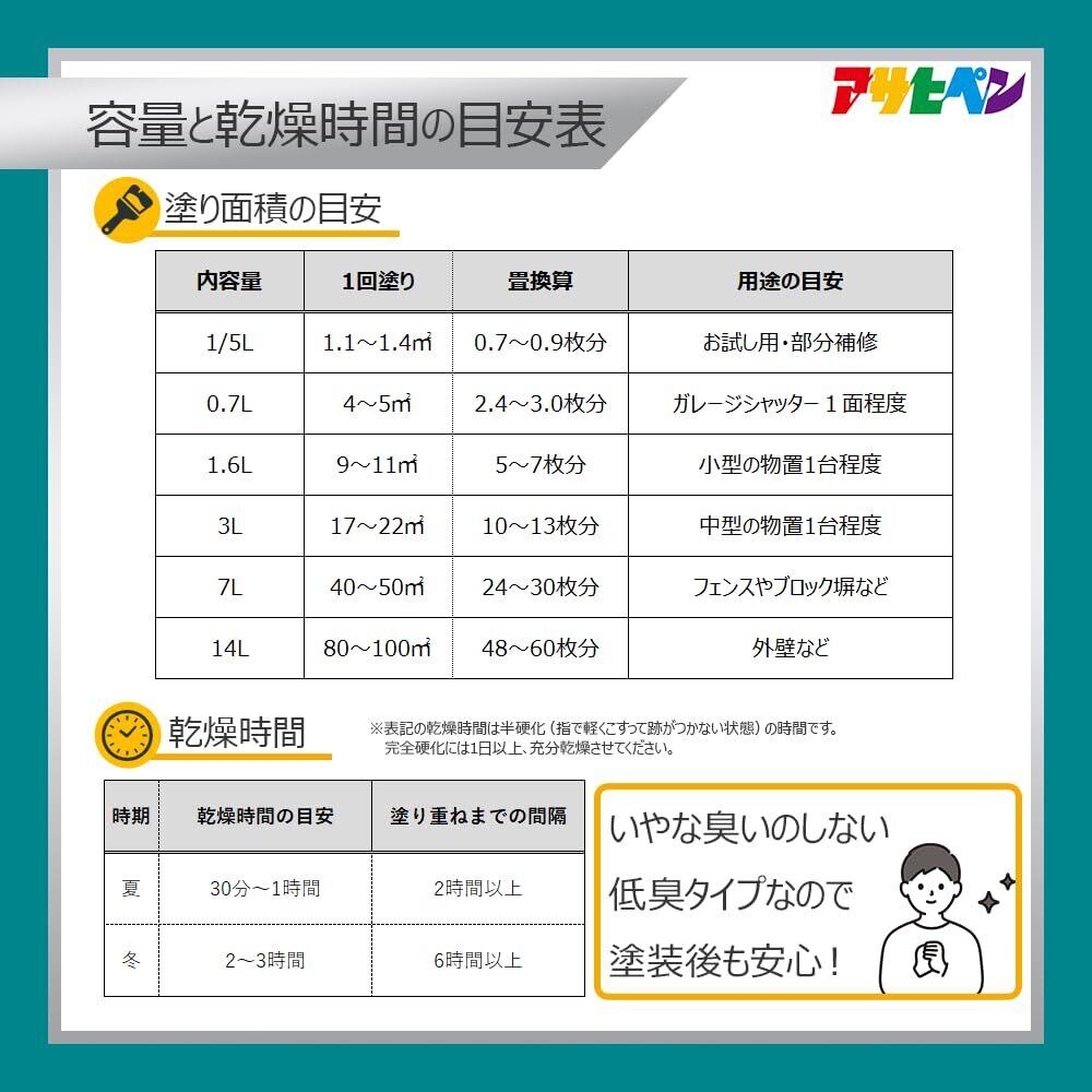 (標準)塗り面積:0.7L/4~5㎡(タタミ2.4~3.0枚分)