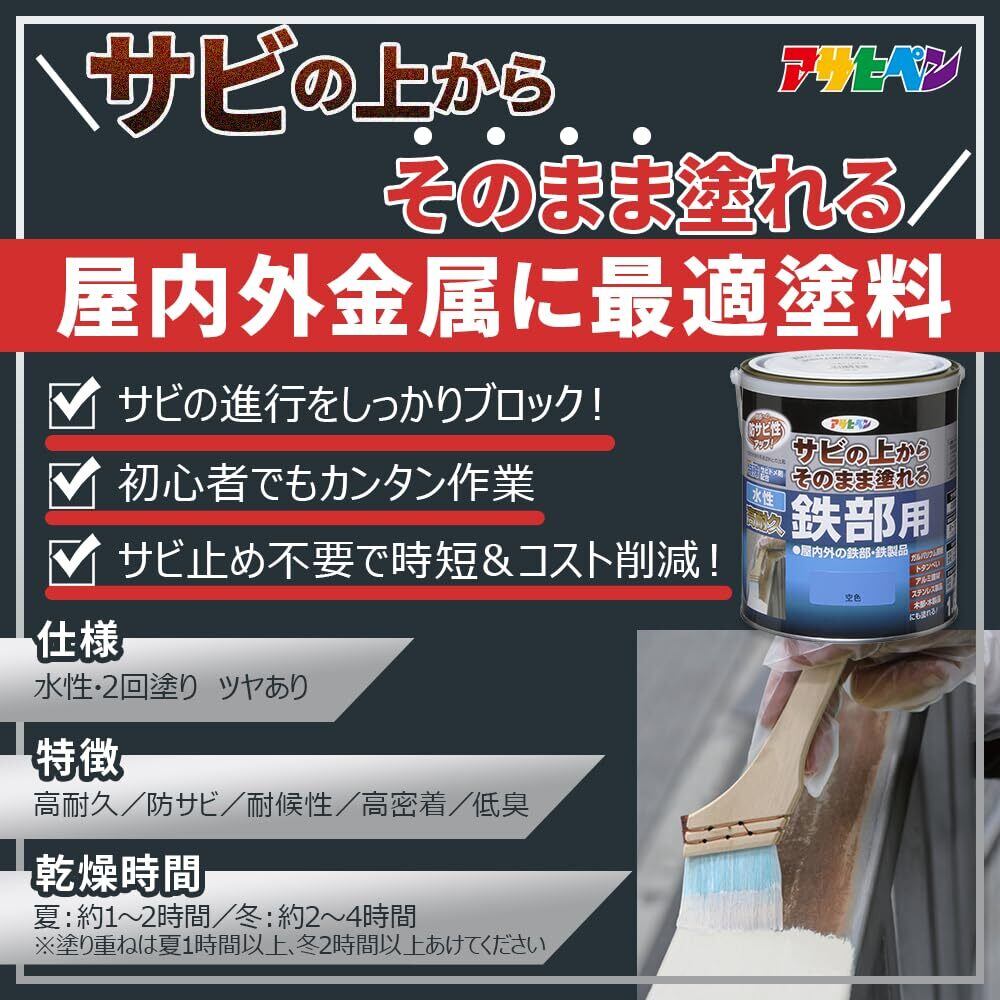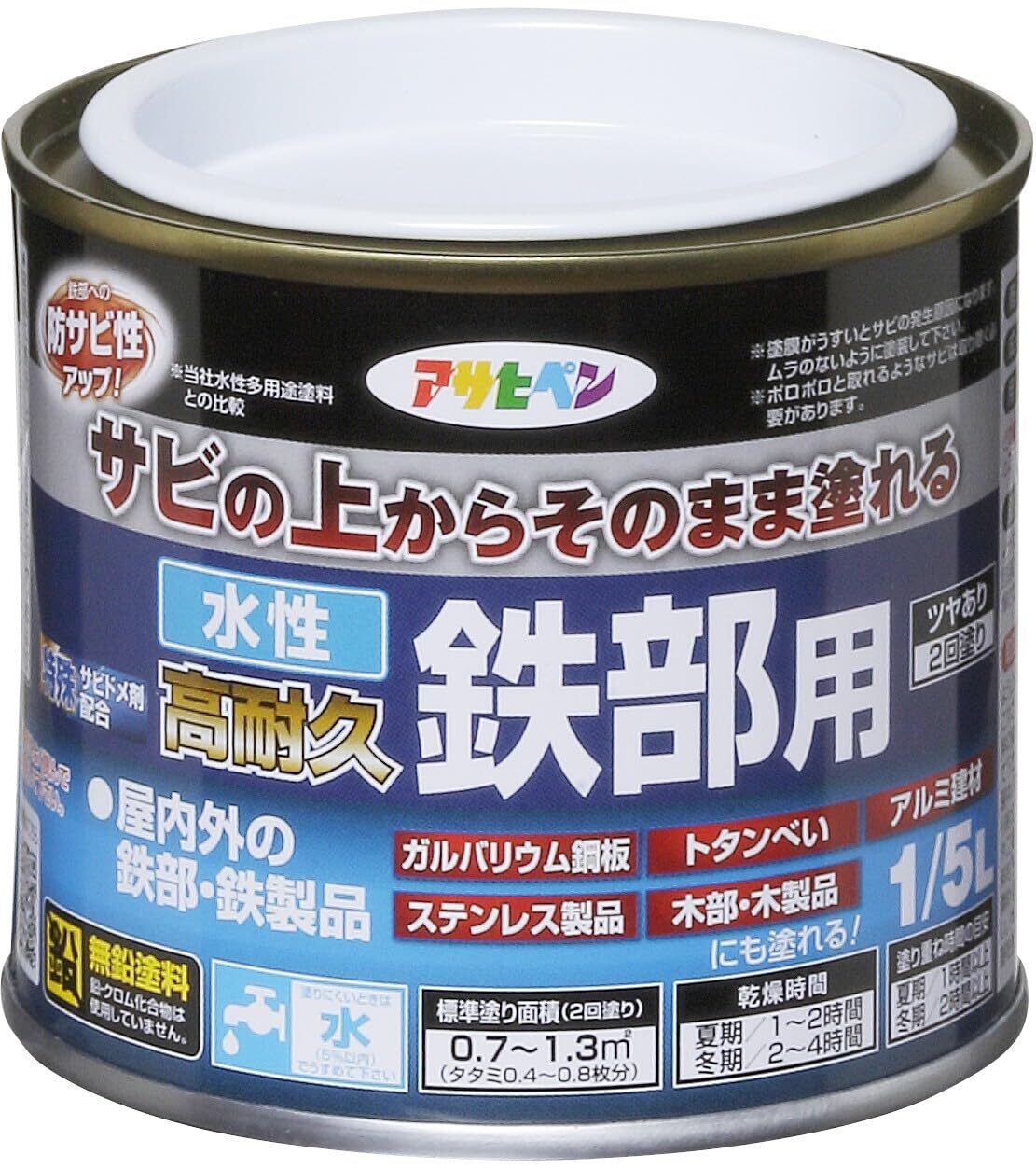 アサヒペン 塗料 ペンキ 水性高耐久鉄部用 1/5L 白 水性 サビの上からそのまま塗れる ツヤあり 低臭 サビドメ剤配合 特殊フッ素樹脂配合 紫外線劣化防止剤配合 日本製