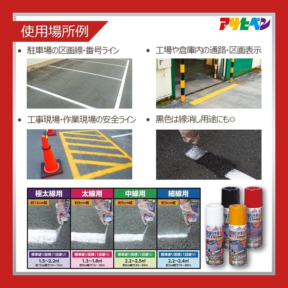 アサヒペン 道路線引き用スプレー 中線用 400ml 白 塗料 ペンキ 約5cm幅 逆さ吹き 文字書き マーキング アスファルト コンクリート 駐車場 ライン引き ガス抜きキャップ付き 日本製