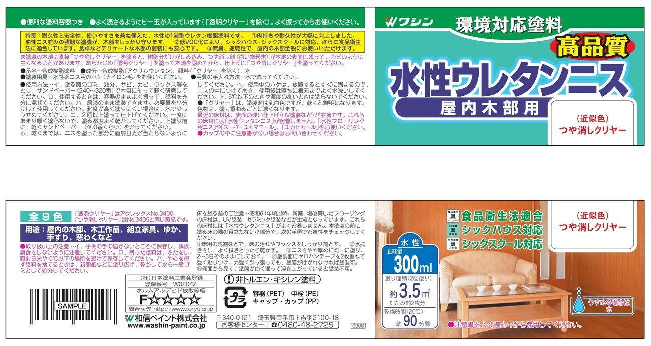 【特価セール】和信ペイント(Washi Paint) 水性ウレタンニス つや消しクリヤー 300ml 屋内木部用 ウレタン樹脂配合 低臭・速乾