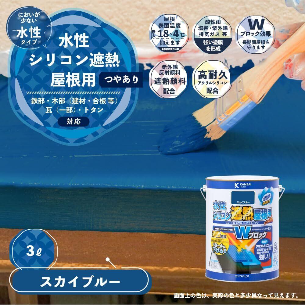 カンペハピオ ペンキ 塗料 水性 つやあり 屋根用 赤外線反射 遮熱塗料 紫外線 速乾性 水性シリコン遮熱屋根用 スカイブルー 3L 日本製 00377650641030