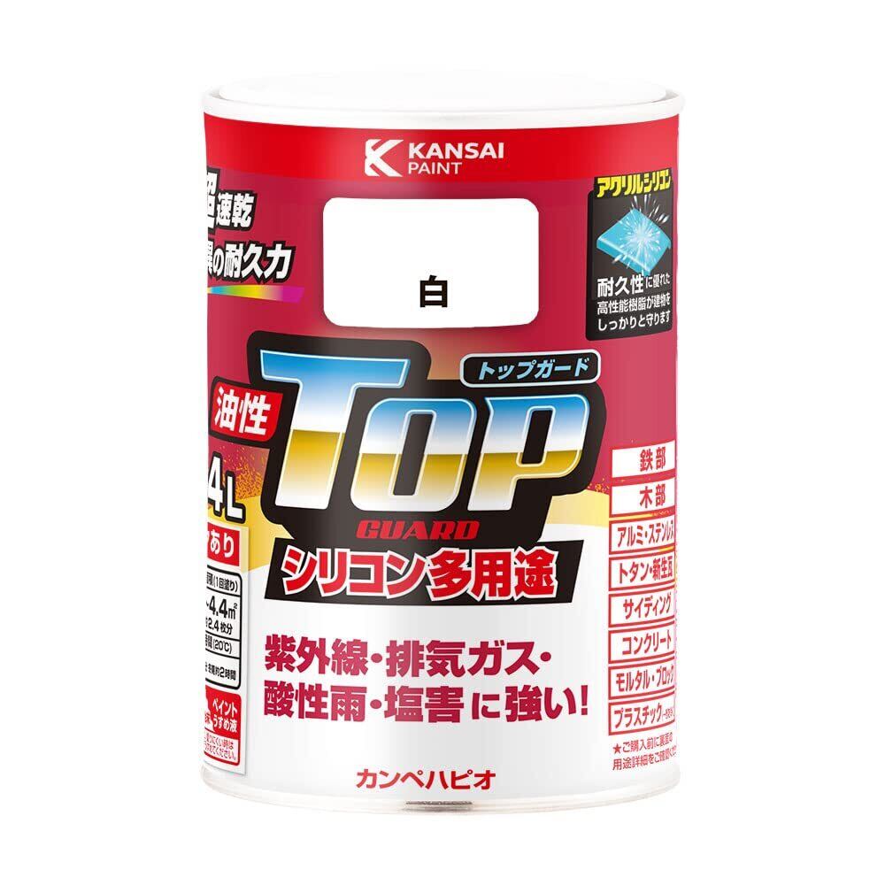 カンペハピオ ペンキ 塗料 油性 つやあり シリコン樹脂 多用途 超速乾 さび止め剤入り トップガード 白 0.4L 油性塗料 日本製 00017640011004