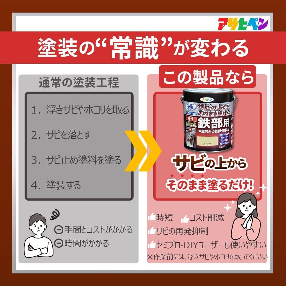 下処理方法:鉄部の補修には、アサヒペン「鉄部補修材」、鉄部からの雨漏り等の補修にはアサヒペン「ワンタッチ鉄部用雨もれ防止補修材」をお使いください。