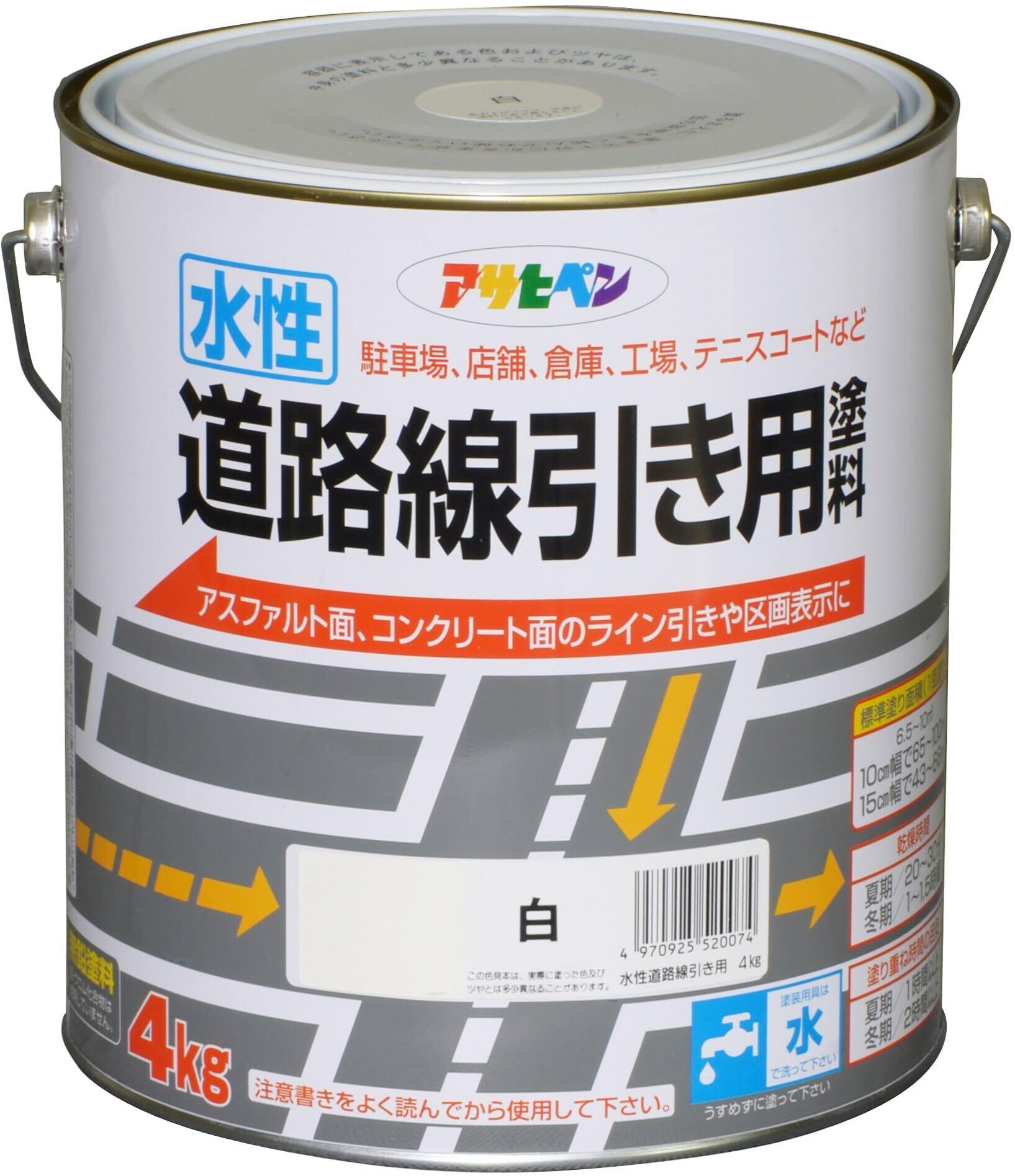 アサヒペン 水性道路線引き用塗料 4kg 白 塗料 ペンキ 水性 道路 ライン引き アスファルト コンクリート 艶消し 1回塗り 滑り止め効果 速乾 耐摩耗性 耐候性 日本製