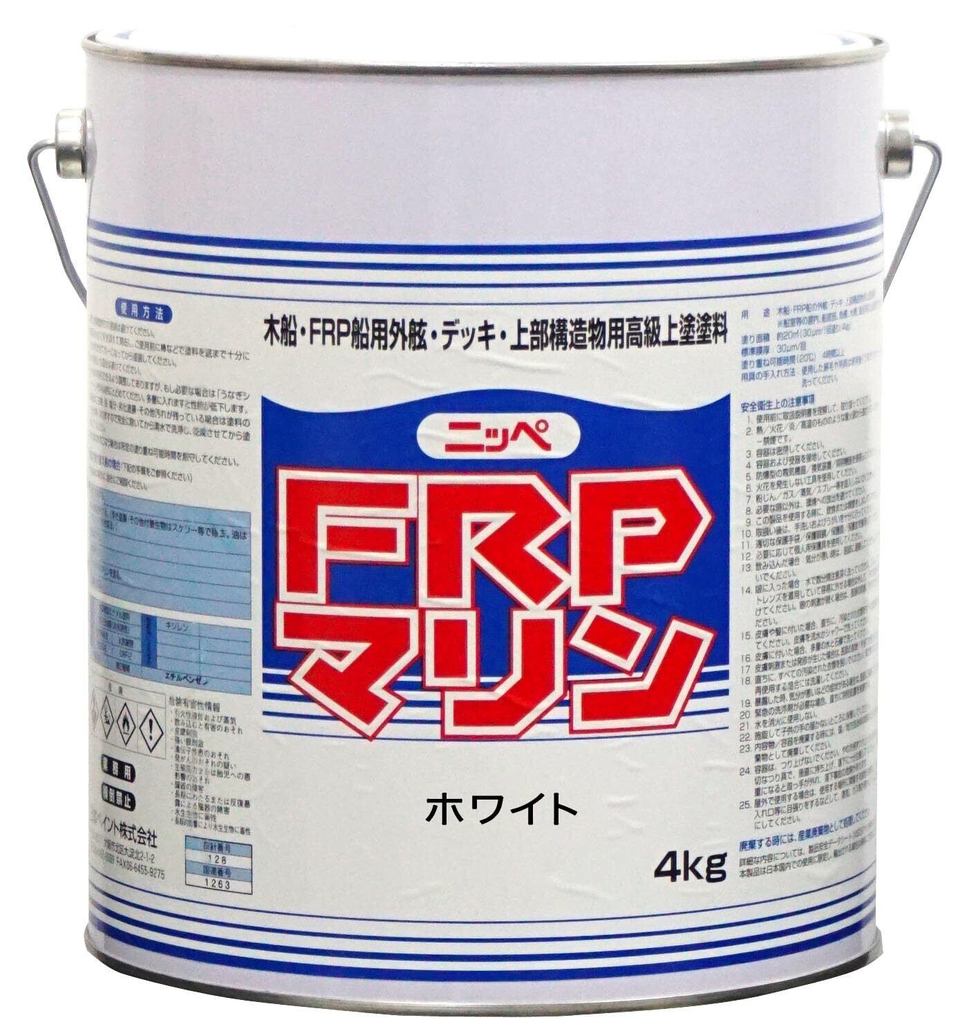 ニッペ(Nippe) ペンキ 塗料 FRPマリン 4kg ホワイト ラッカー つやあり 屋外 日本製 4547163000219