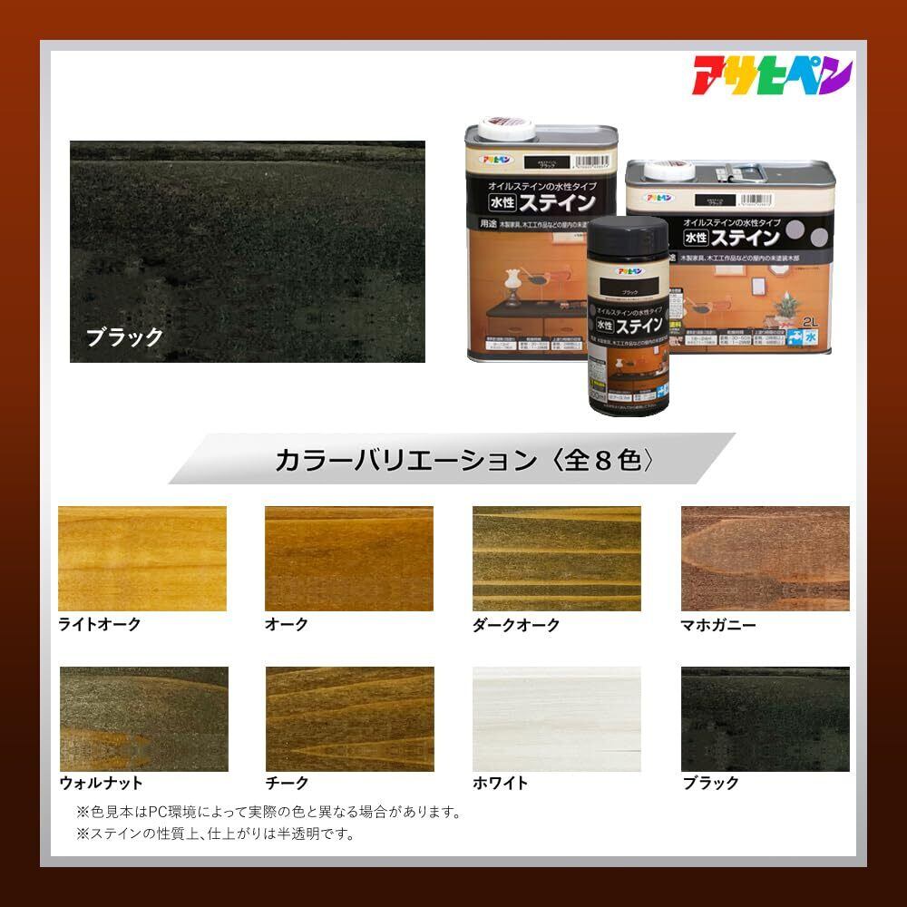 アサヒペン 塗料 ペンキ 水性ステイン 300ml ブラック 水性 艶消し ステイン仕上げ 上塗り不要 シックハウス対策品 日本製