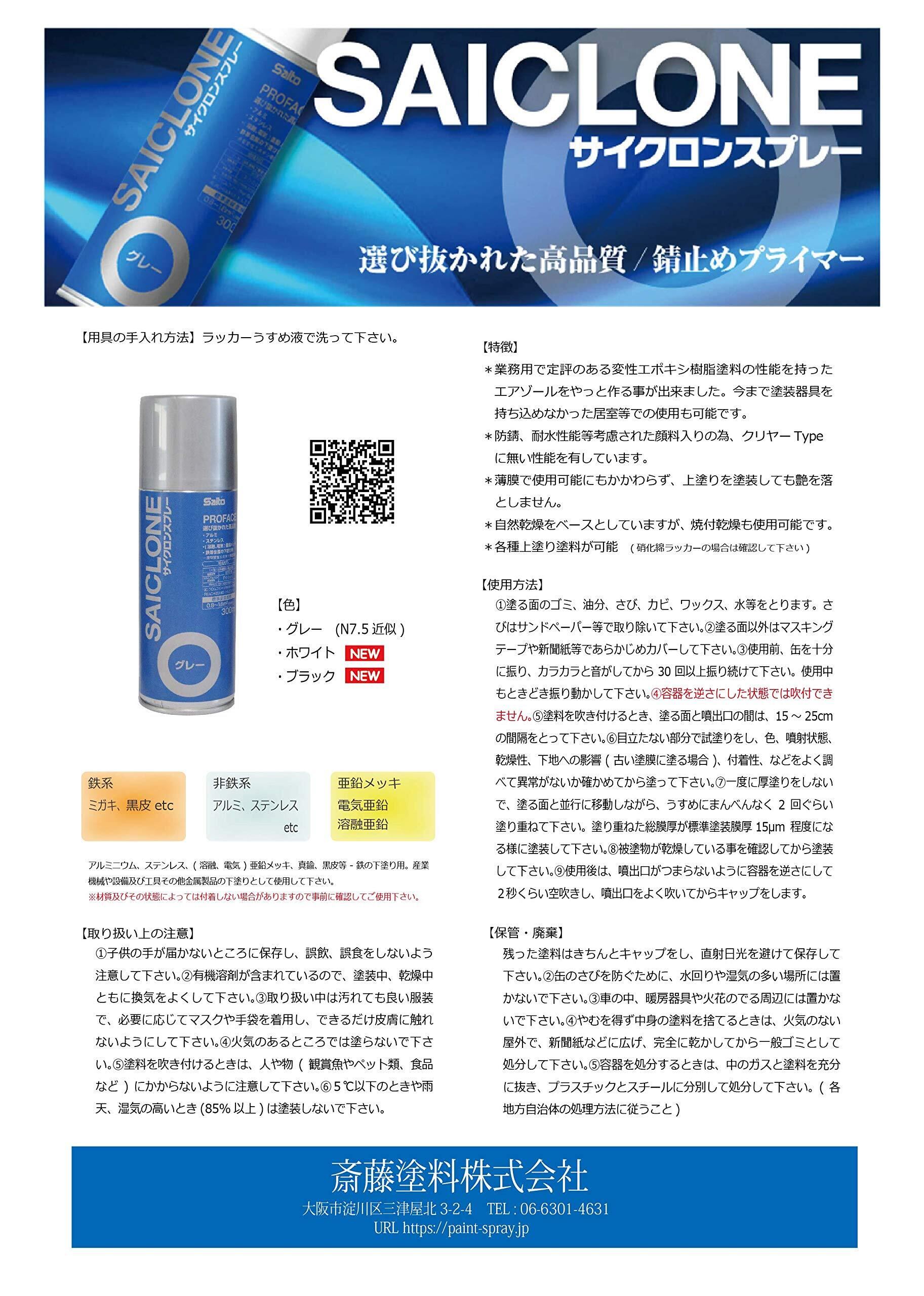 【特別価格】Saito サイクロンスプレー PRO FACE 300mℓ プライマー さび止め (ブラック)