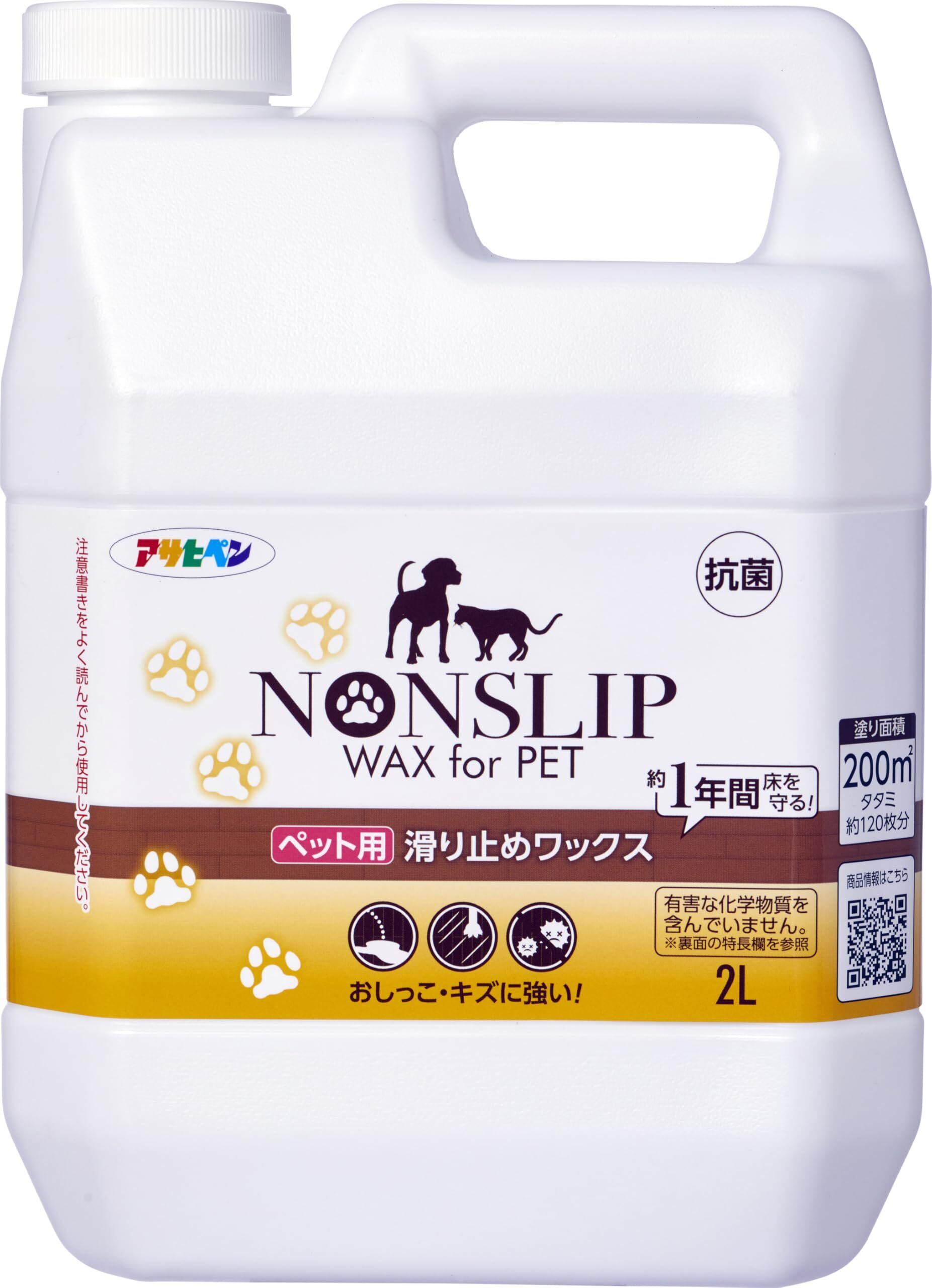 アサヒペン 床用 ワックス ペット用滑り止めワックス 2L スリップ軽減 捻挫 転倒予防 キズに強い 抗菌剤配合 日本製