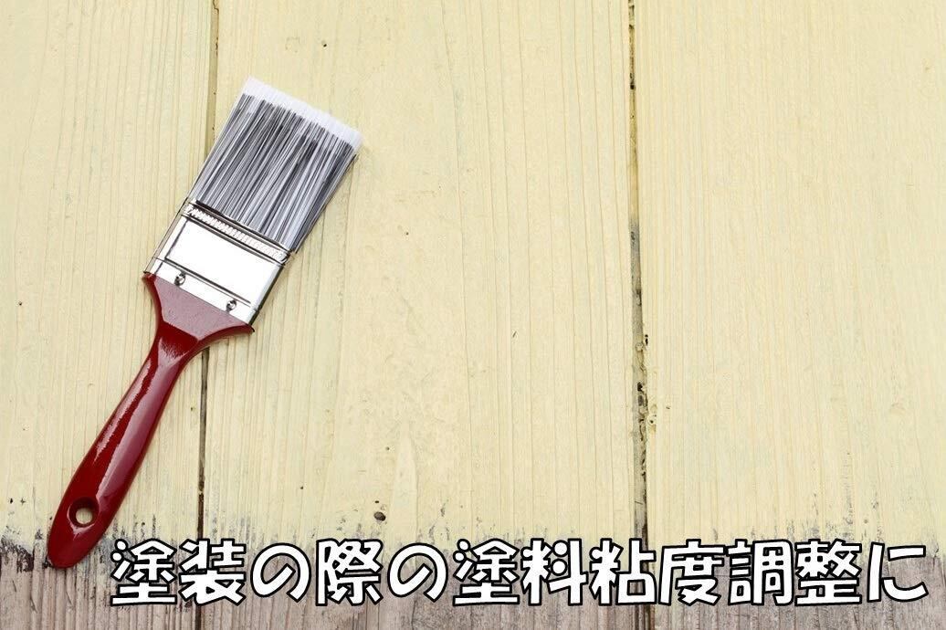 弱溶剤系の塗料のうすめ液として使用可能です。ラッカーのような強溶剤が必要な場合や水性塗料を希釈する場合には使用できません。