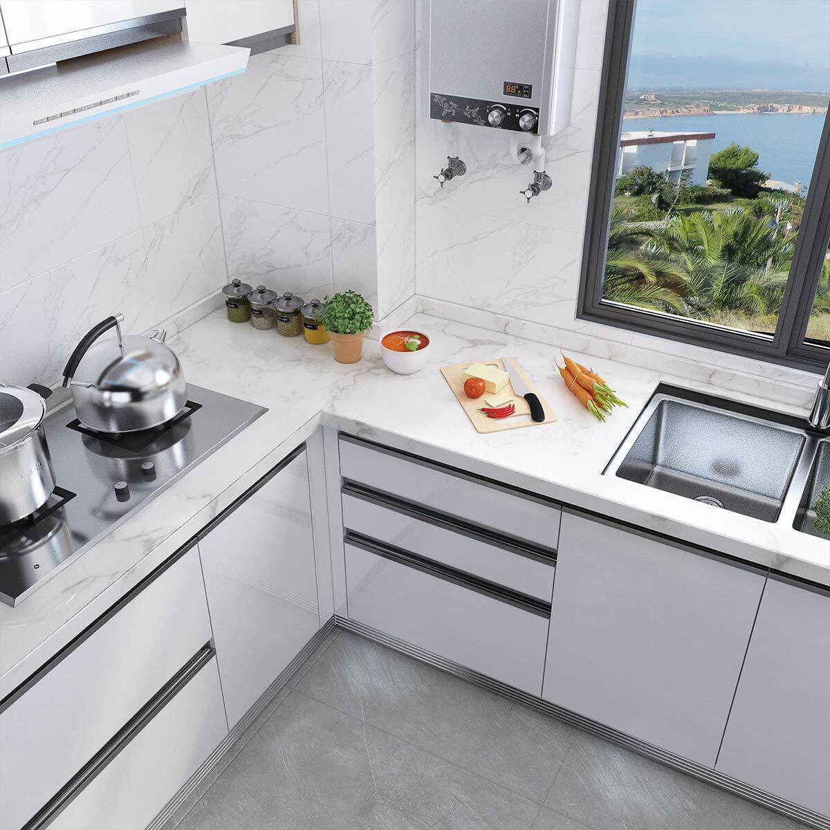 床 リメイクシート 壁紙シール 白 接着剤付き はがせる 防水 防汚 防カビ 耐熱 大理石調 カッティングシート DIYインテリア 防油 キッチン浴室 補修 ウォールステッカー