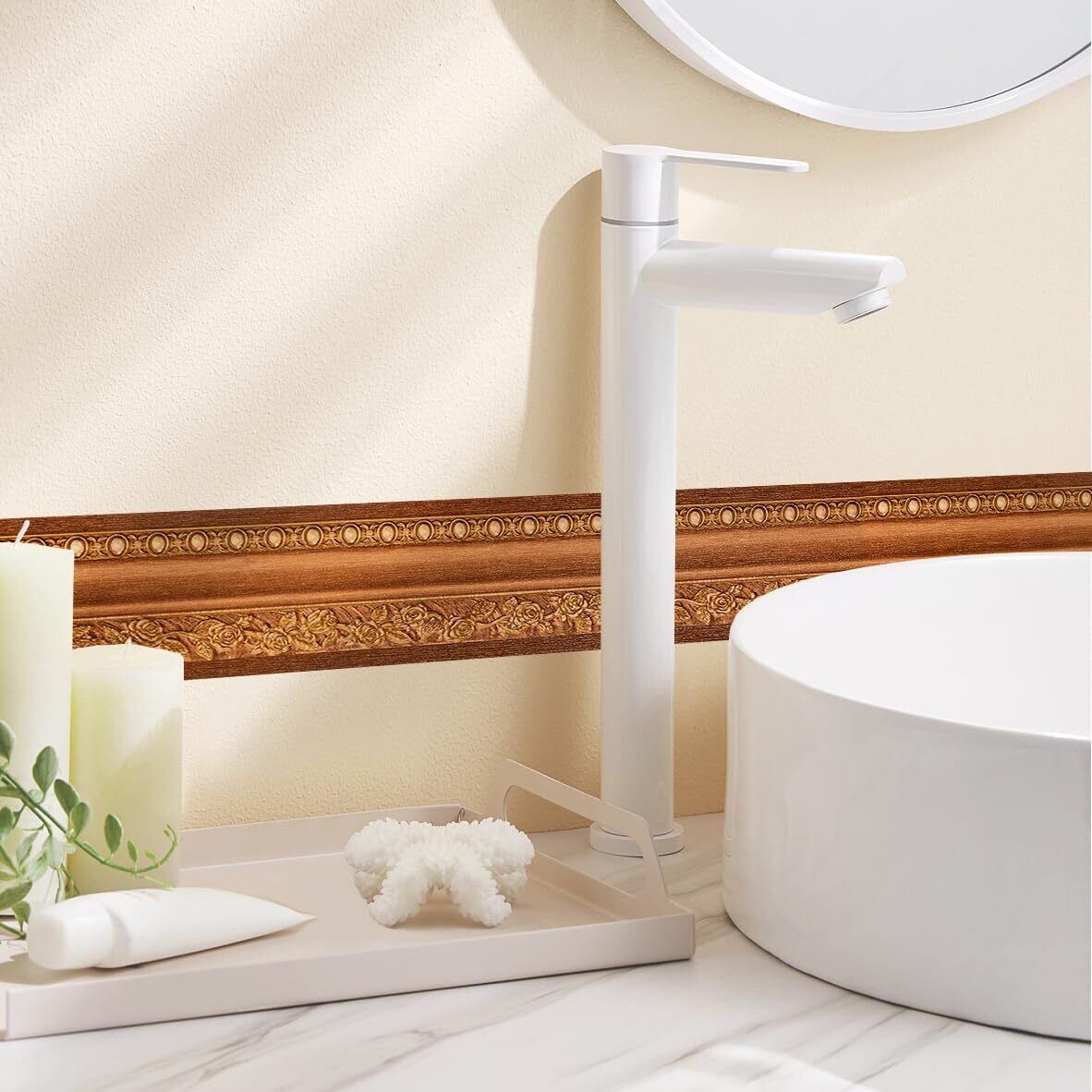 【マスキングテープ 木目 】パターンデザイン:木製のパネルに彫られた花の効果を模しています。マスキングテープでインテリアを楽しむ。お部屋の壁や家具のアクセントとして人気飾り壁紙トリムボーダーです。表面はエンボス加工が施されているので、リアルな木目と質感を表現しています。
