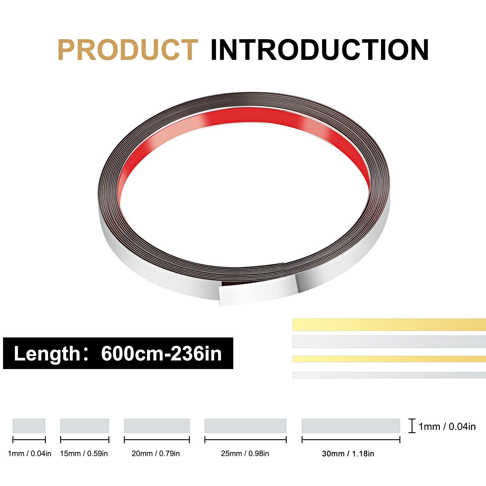 【サイズ/カラー】壁紙トリムボーダーにはさまざまなスタイルがあり、その中からお選びいただけます。彼の長さは300cm / 118.1inと600cm / 236.2inの2種類です。幅は4種類、1cm / 0.39インチ、1.5cm / 0.59インチ、2cm / 0.79インチ、2.5cm / 0.98インチ、3cm / 1.18インチです。シルバー、ゴールド、ブラック、ローズゴールドがあり、あなたの装飾の好みにぴったりのものを見つけてください