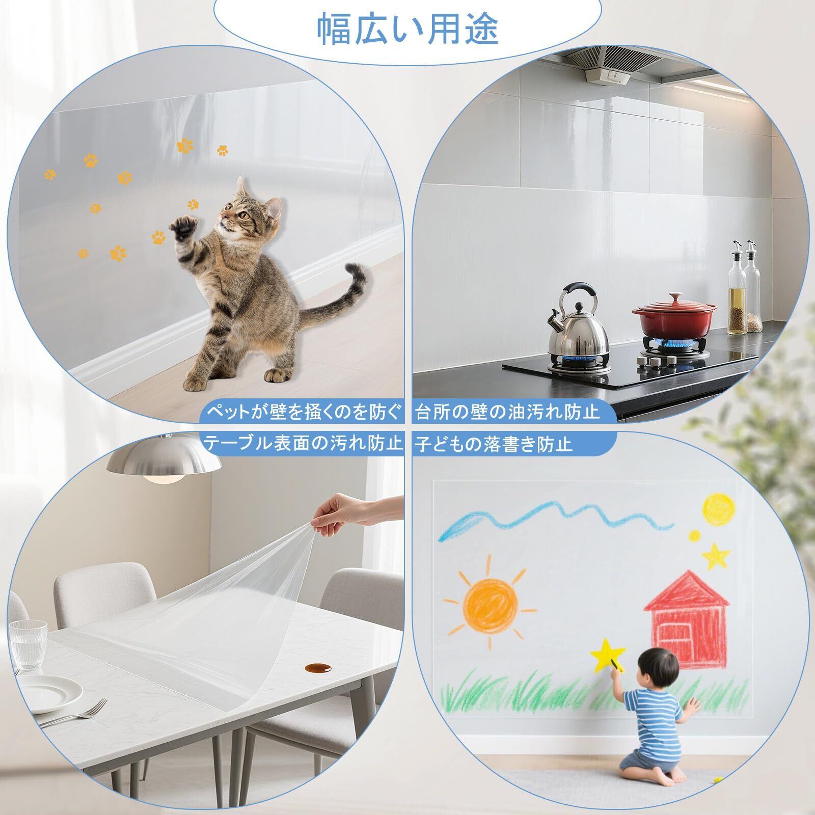 【幅広い用途】壁紙保護シートは、壁、デスクトップ、キッチンタイル、ガラスドア、窓などの滑らかな表面に使用できます。