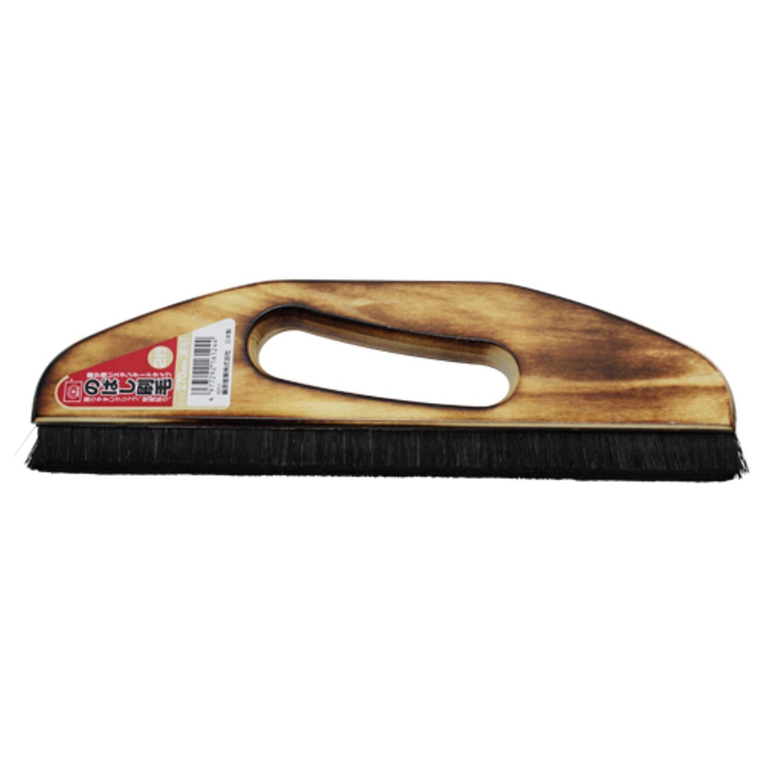 27cmの幅広で豚毛の毛足が短く、2行の密度の高い植毛で腰が強く壁紙やクロスの張替をシワなく接着させるようしっかり撫でられる。