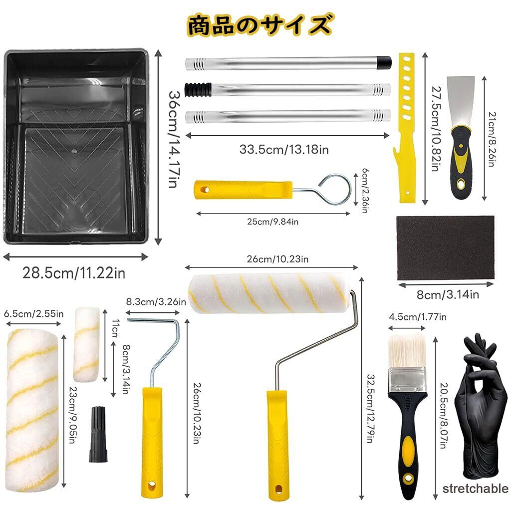 【数量限定】ペイントローラーキット、 19PCS、9インチ&4インチローラー、ステンレス製延長ポール付き、収納トレイ、壁・天井・ドア・部屋の塗装、手袋付き