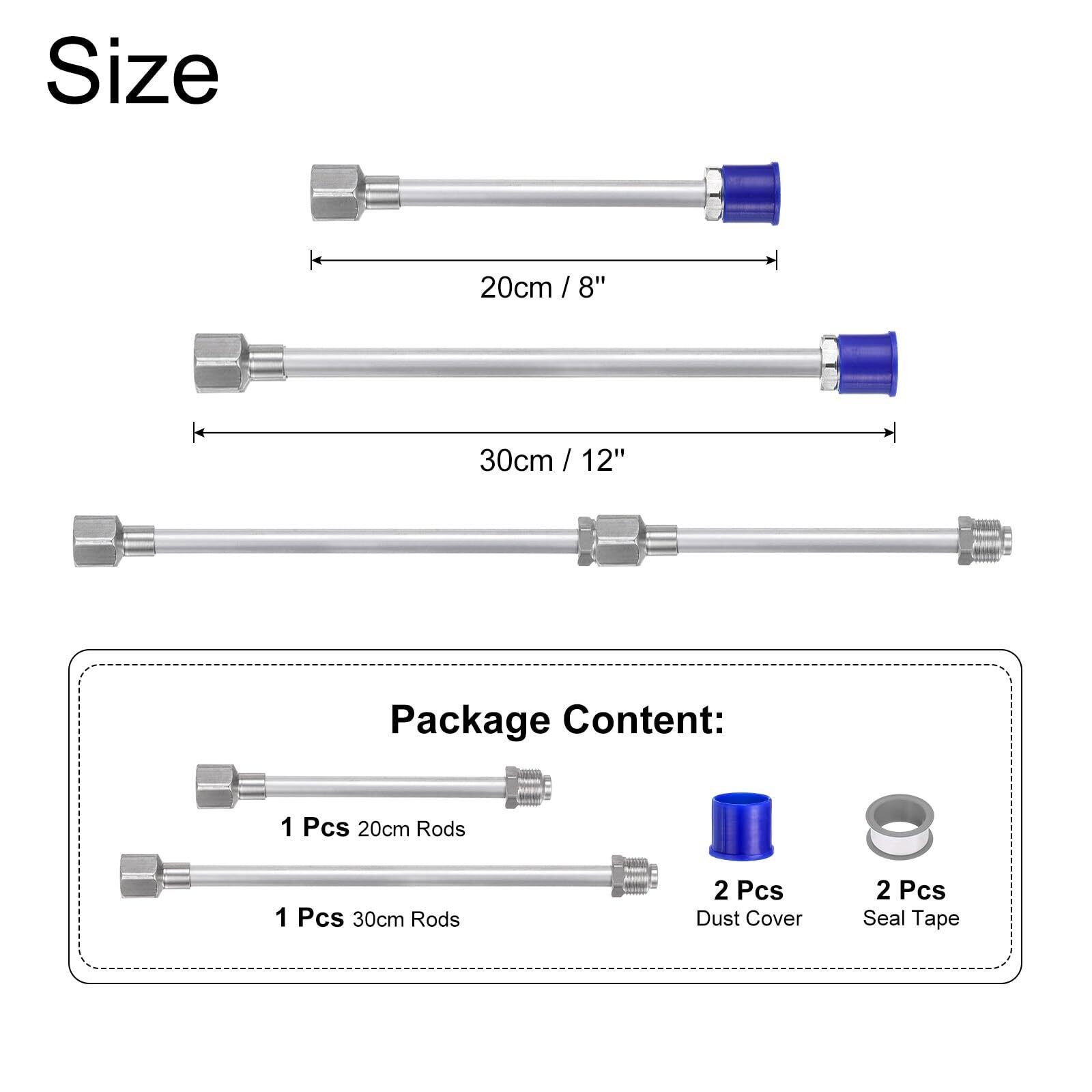 エアレススプレーガ ン用の8"/20 cm 12"/30 cm延長ロッドは、アルミニウム合金で作られており、酸化処理された表面で、ロッドの耐食性、傷、摩耗を向上させ、全体的な耐久性を向上させます。