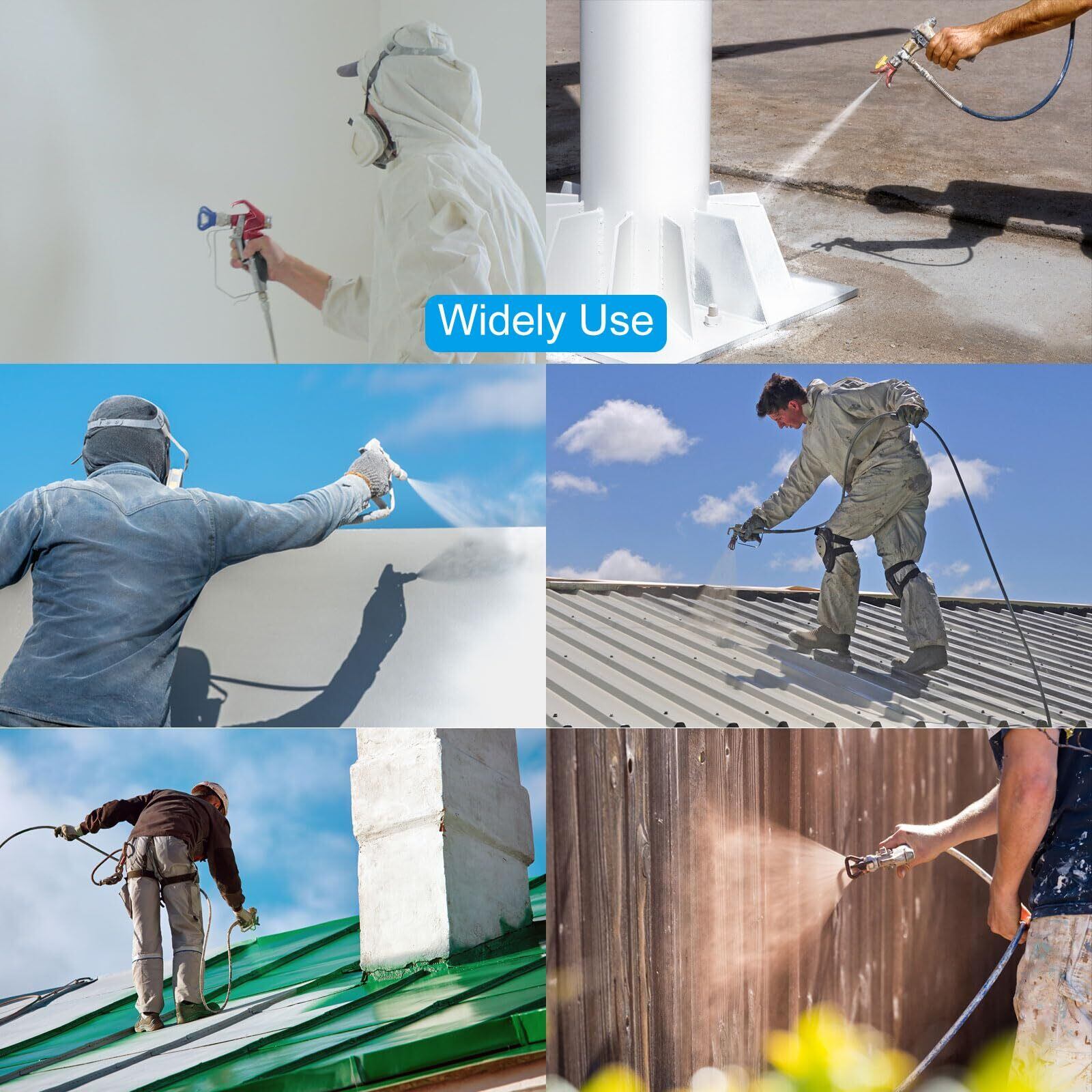 幅広い用途: さまざまなコーティング(ラテックスペイント、油性ペイント、ニスなど)を扱うことができ、さまざまな種類のエアレススプレーヤーに適しており、家庭、建物、庭のフェンス、家具などのさまざまなニーズに対応しています。